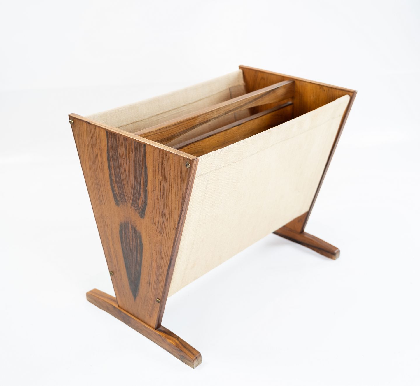 Avisholder i palisander og canvas af dansk design fra 1960erne.