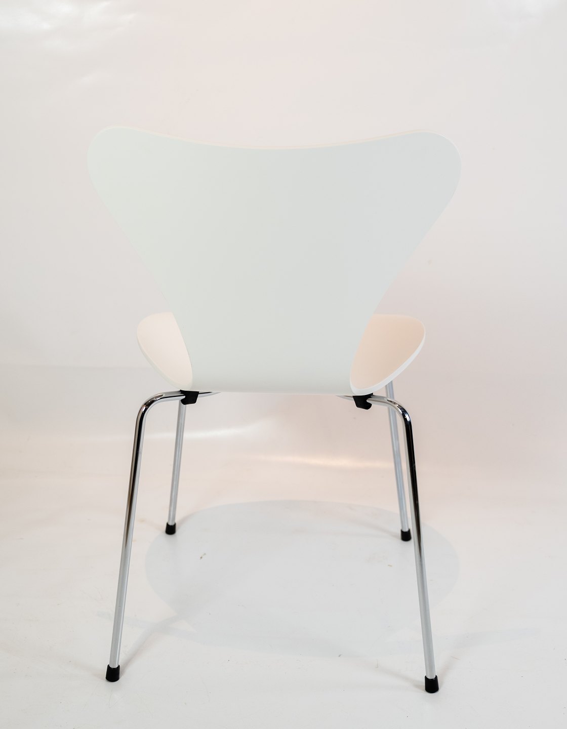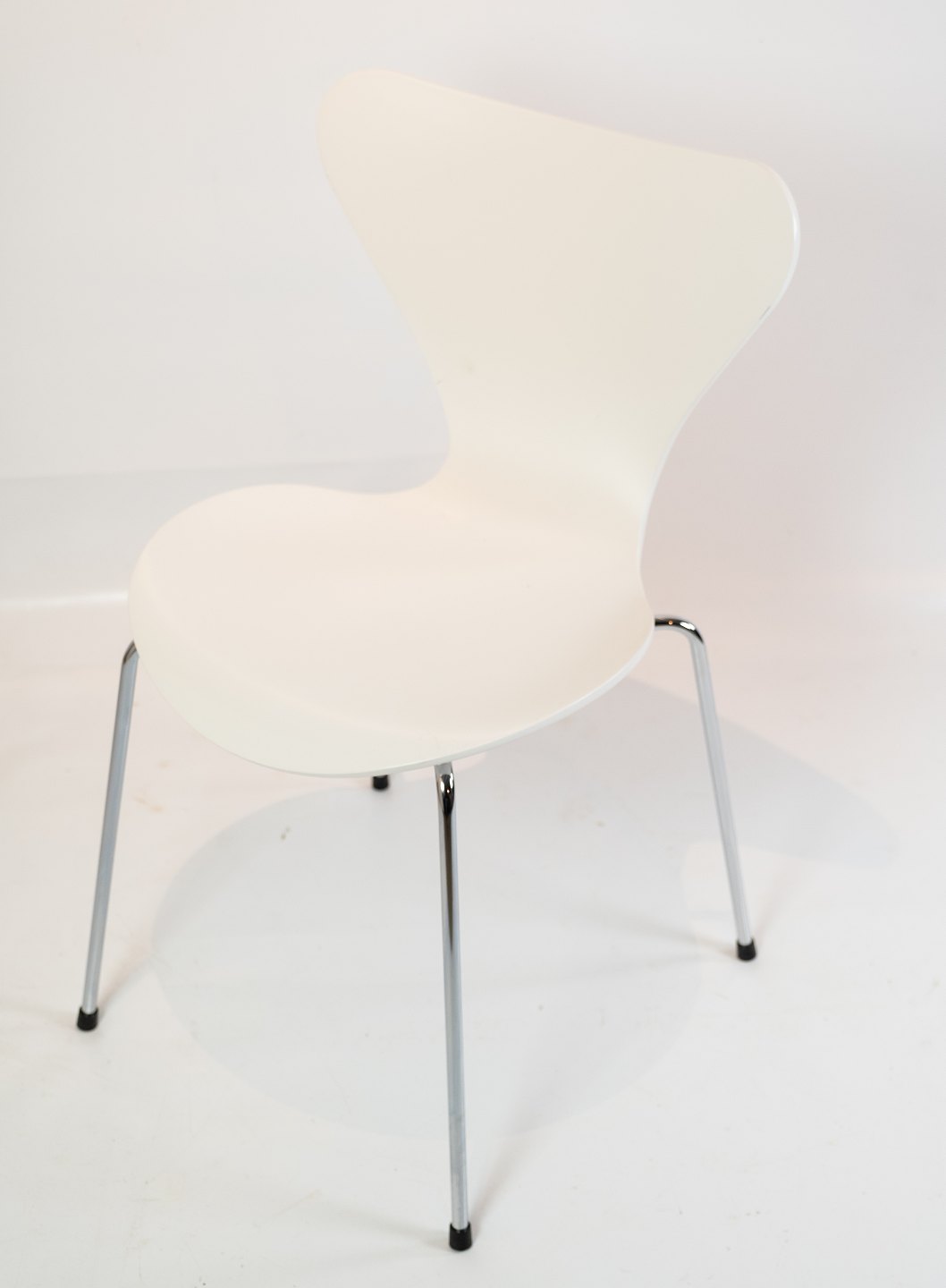 Dette sæt af Syver-stole, model 3107, designet af Arne Jacobsen og fremstillet af Fritz Hansen, repræsenterer en milepæl i dansk møbeldesign. Syver-stolen, også kendt som "Serie 7", blev designet i 1955 og er blevet en af de mest ikoniske og udbredte stole i verden.