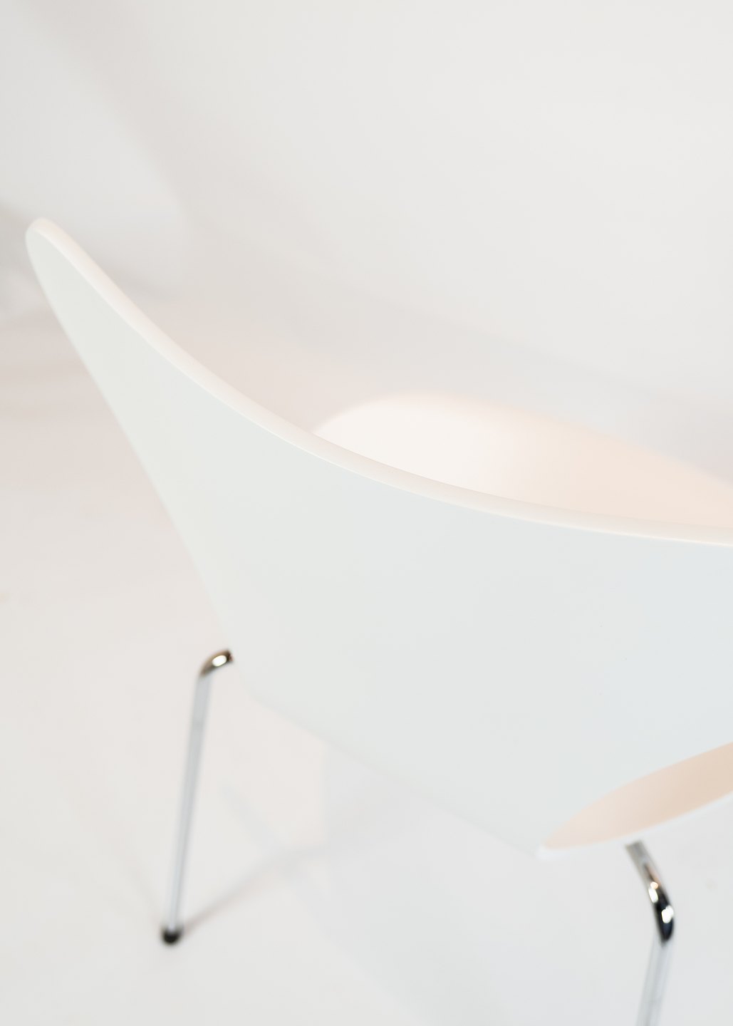 Stolene er fremstillet af formspændt finér, der giver dem deres karakteristiske kurvede form og enestående komfort. Denne teknik gør det muligt at skabe en let og elegant stol, der samtidig er robust og holdbar. Arne Jacobsen skabte Syver-stolen med tanke på både æstetik og funktionalitet. Stolens enkle og slanke design gør den alsidig og velegnet til en bred vifte af indretninger og anvendelser, fra spisestuer til kontorer.