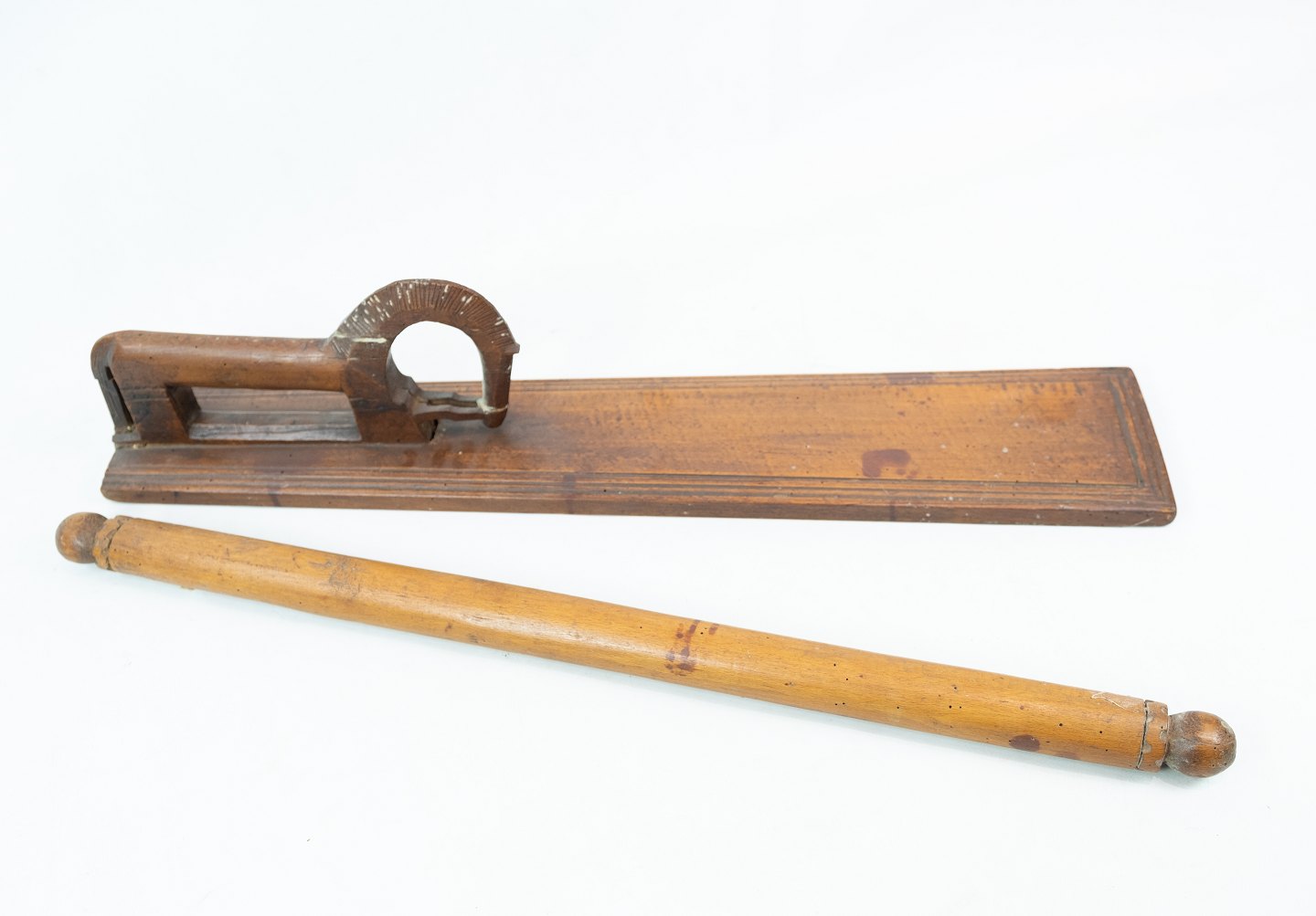 Beautifully decorated antique board with handle in the shape of a horse in dark wood from the 1890s.