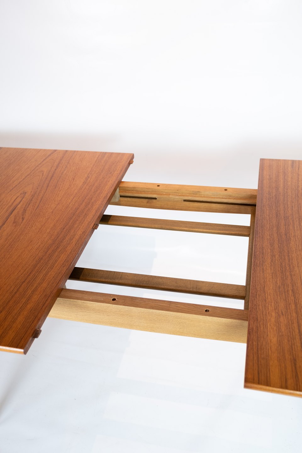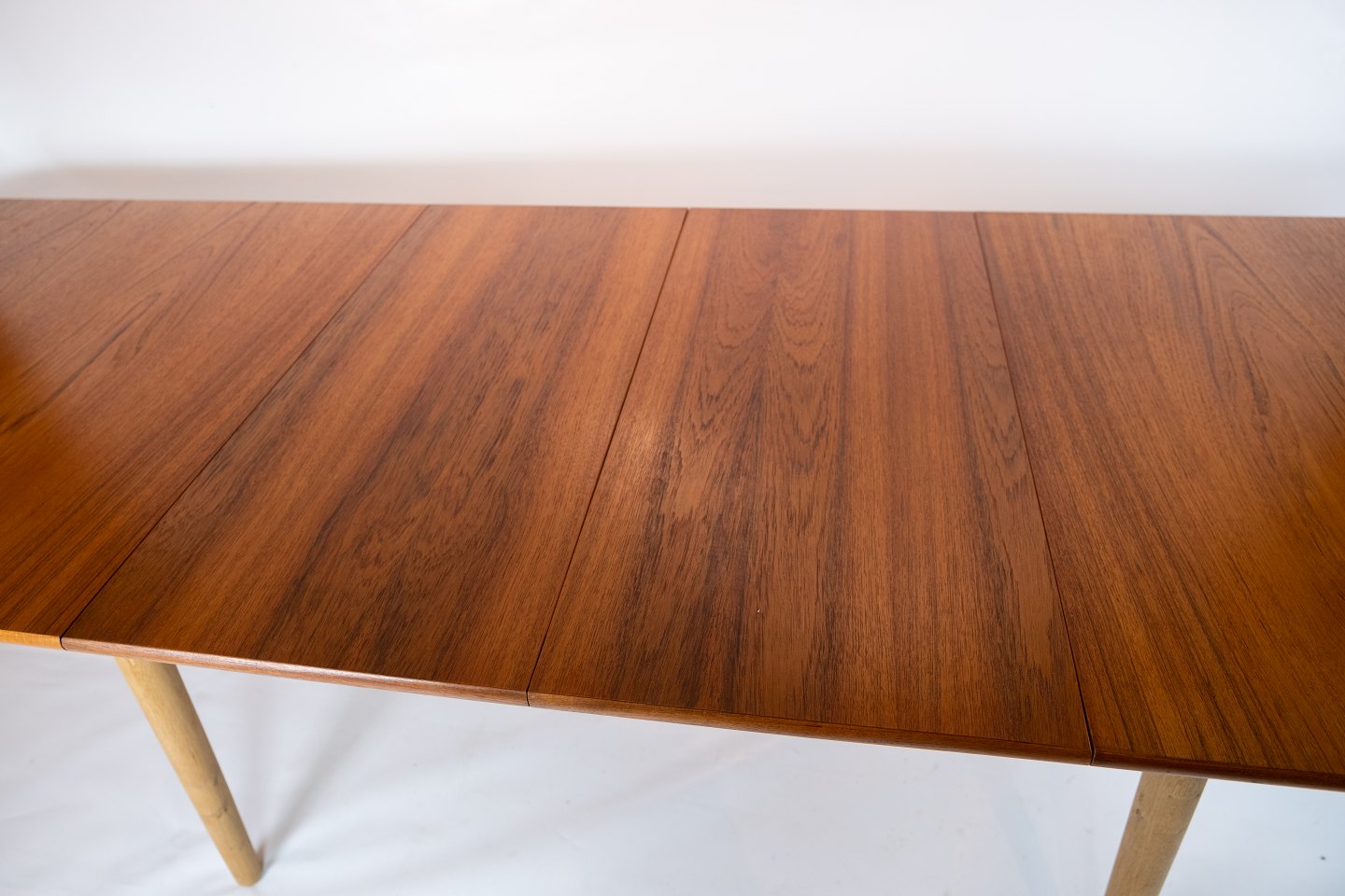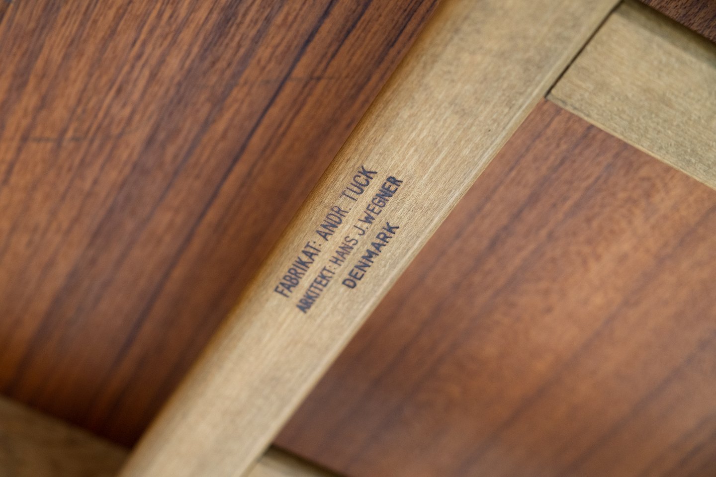 Spisebord i teak og eg med udtræk designet af Hans J. Wegner og fremstillet af Andreas Tuck.