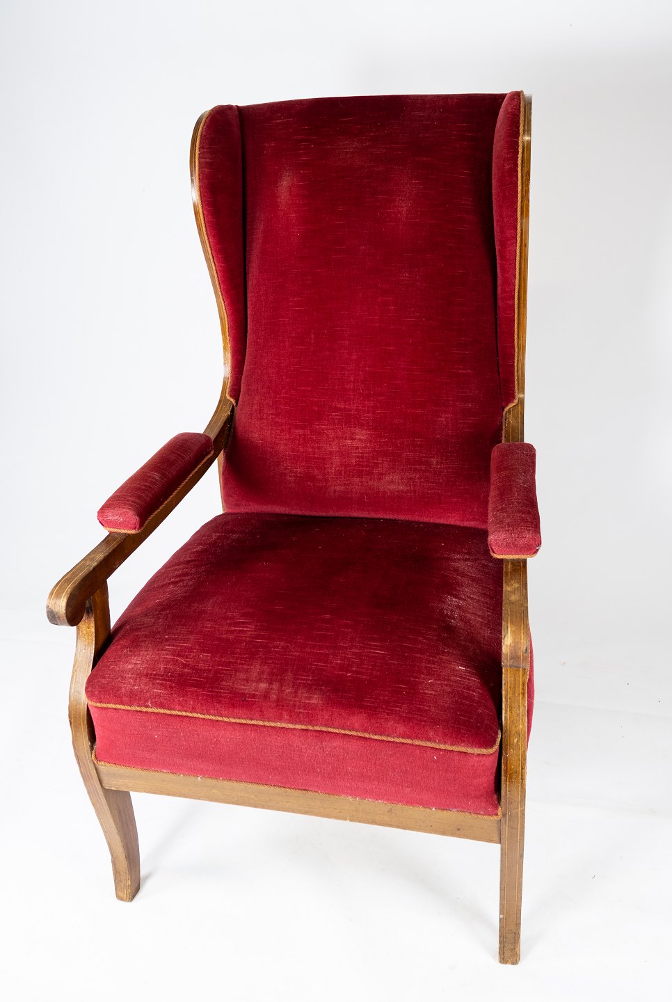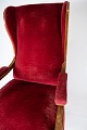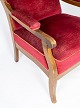 Armchair upholstered with red velvet and mahogany designed by Fritz Henningsen.