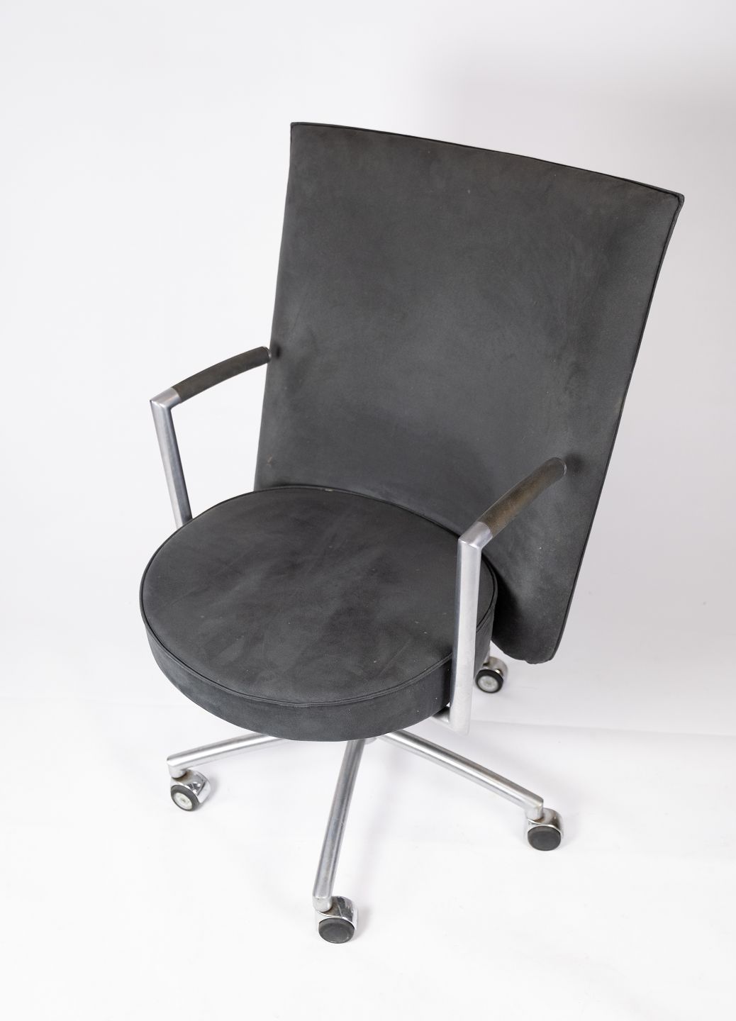 Kontorstolen model EJ70 er et elegant valg til enhver arbejdsplads. Den er polstret med et smukt mørkegråt stof, der tilføjer både stil og komfort til din arbejdsdag.