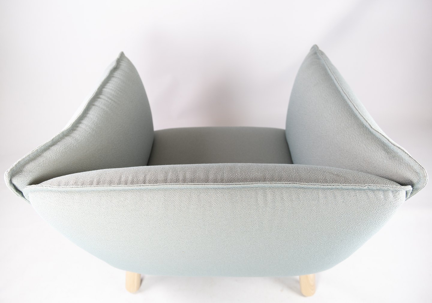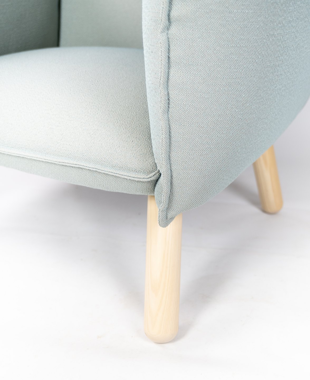 The Dormi lounge chair, upholstered in gray fabric and with beech legs, is an inviting piece of furniture that adds both comfort and style to any room. With its simple and modern design, this chair is perfect for relaxation and coziness.