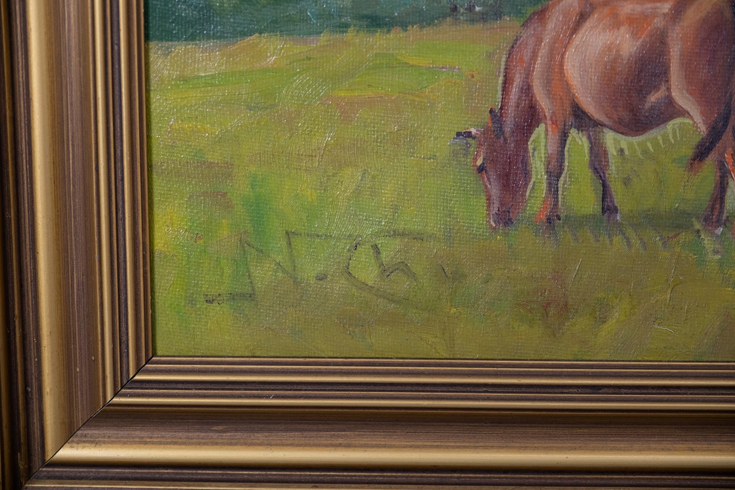 Oliemaleri med land motiv og forgyldt ramme, af Niels Christiansen.