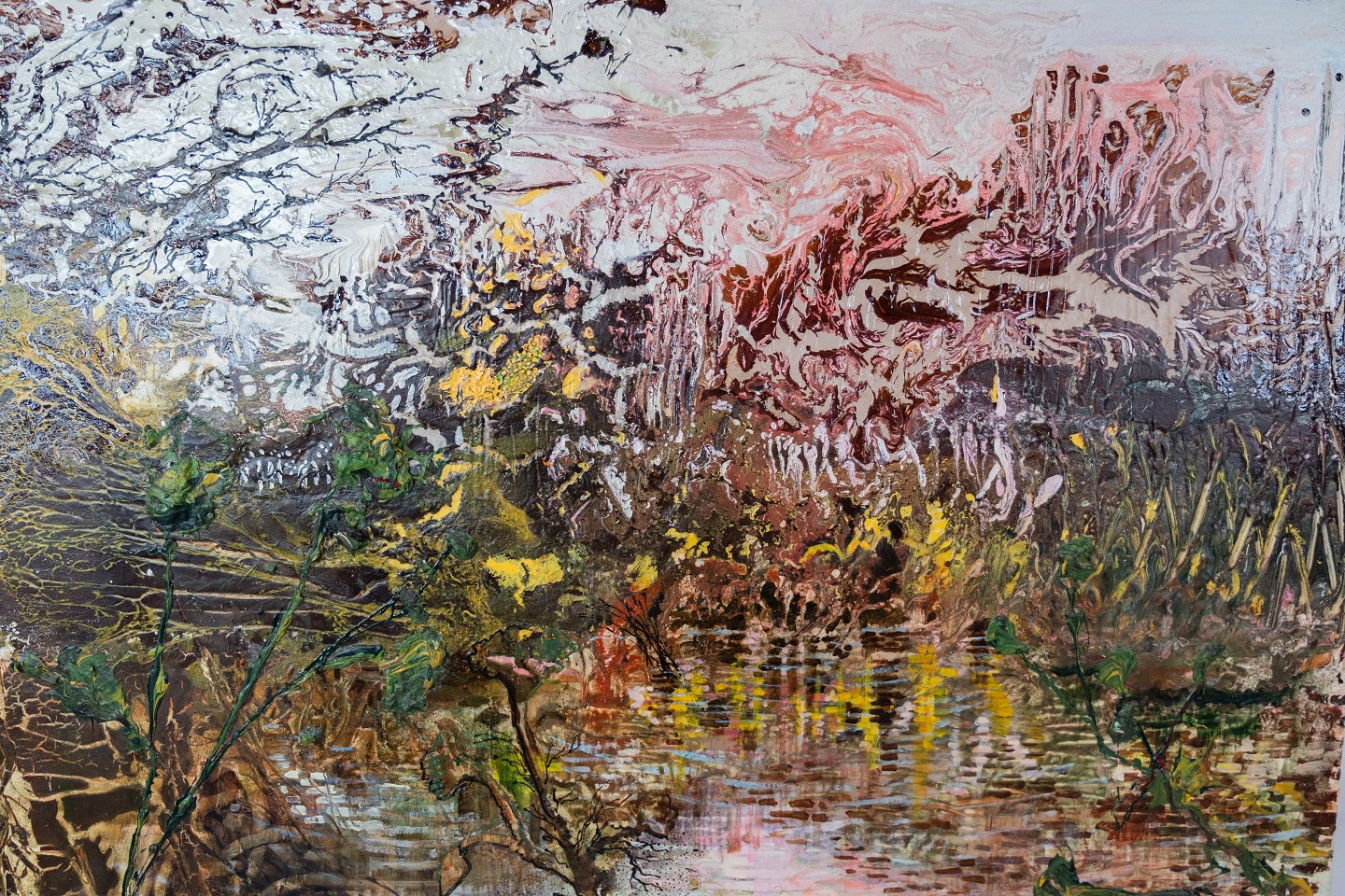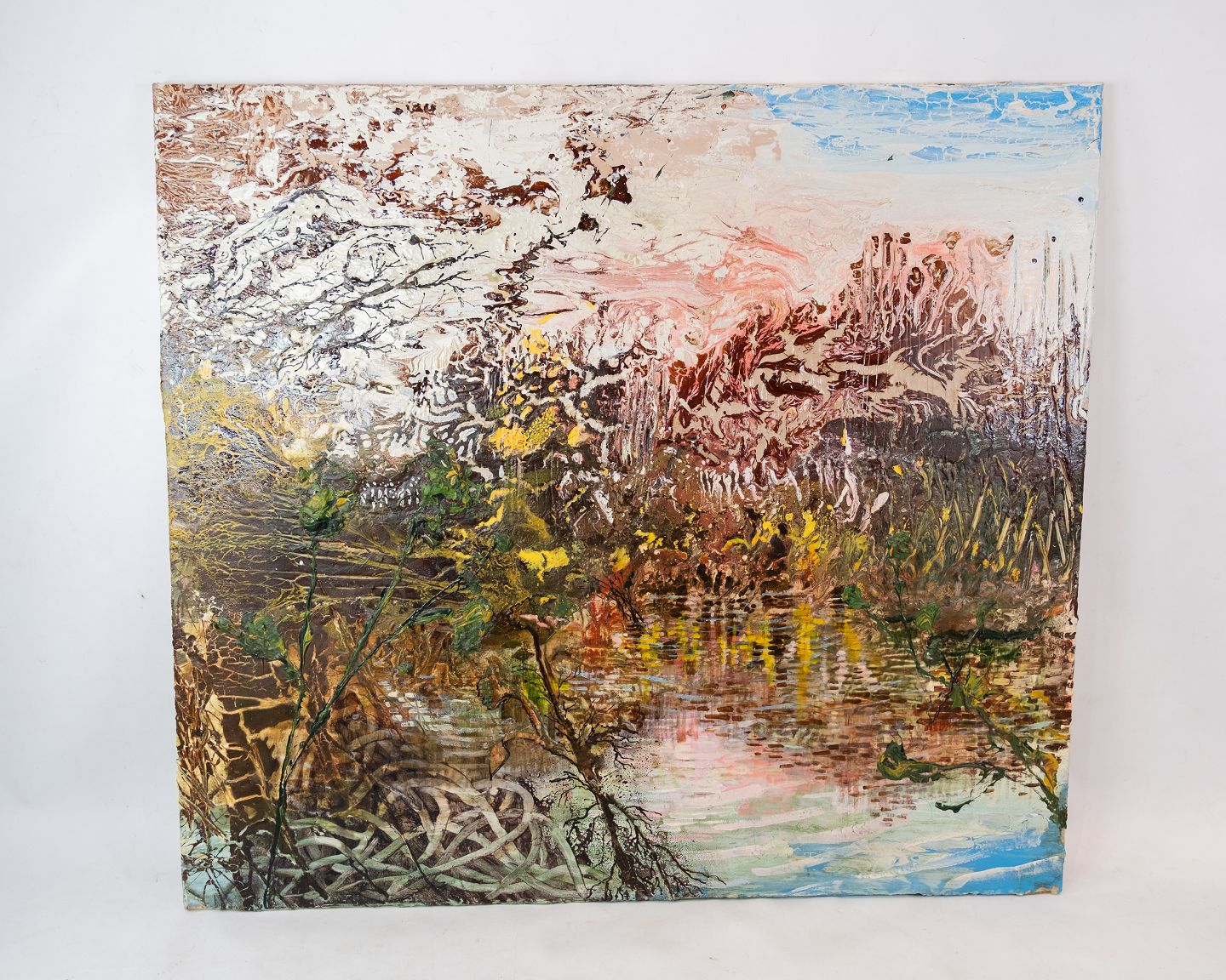SolgtAbstrakt oliemaleri i stærke farver af Paul Smulders.