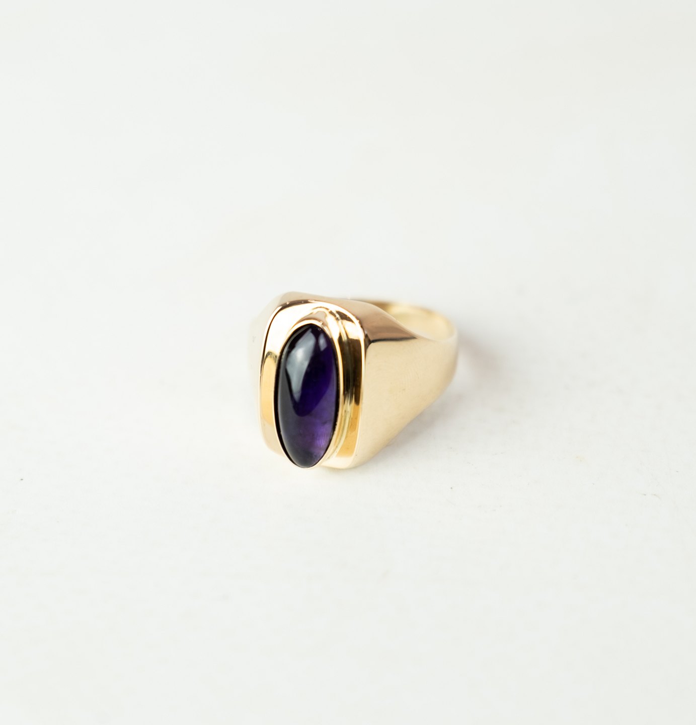 Ring decorated with amethyst and of 14 carat gold, stamped FF.