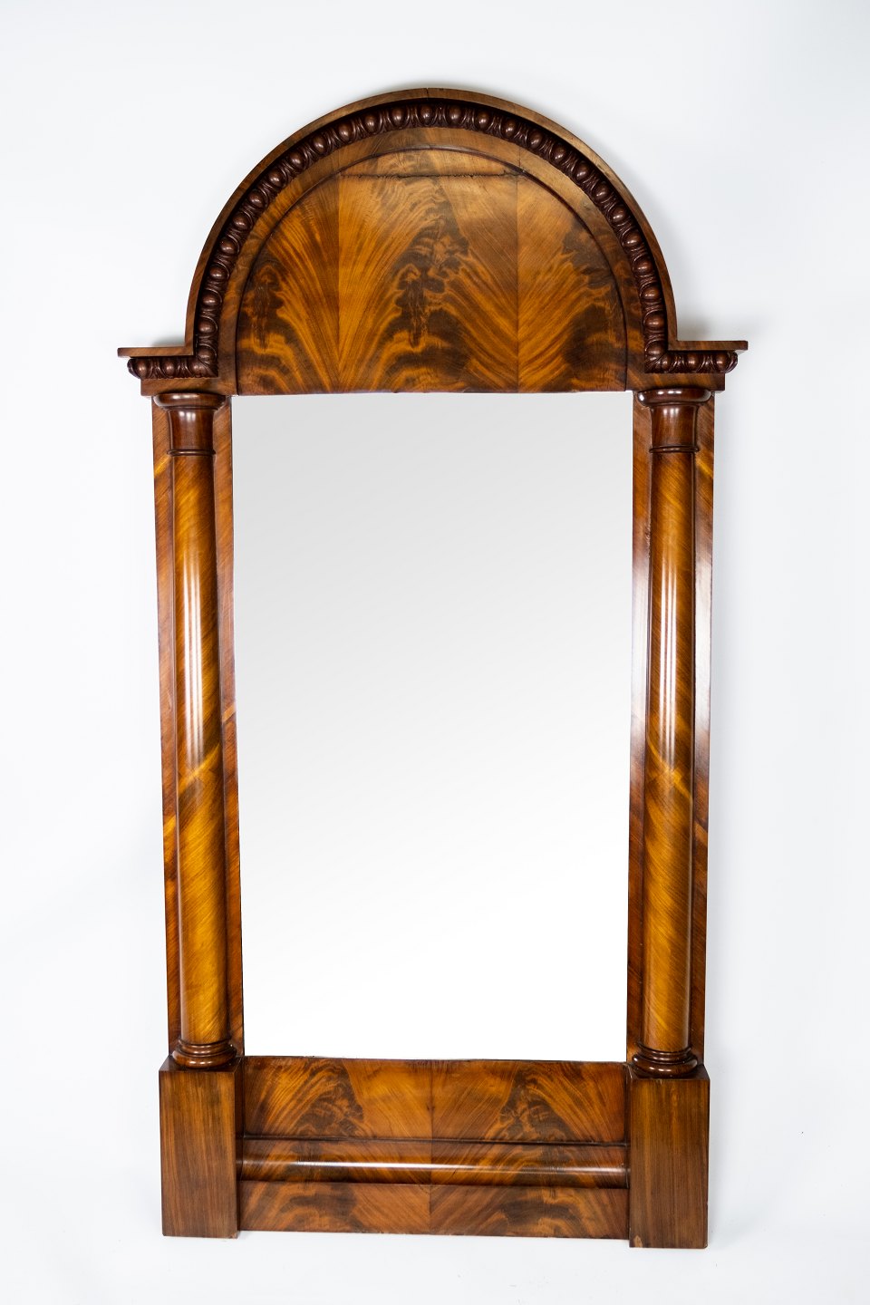 Tall mirror of polished mahogany, in great vintage condition from the 1860s.