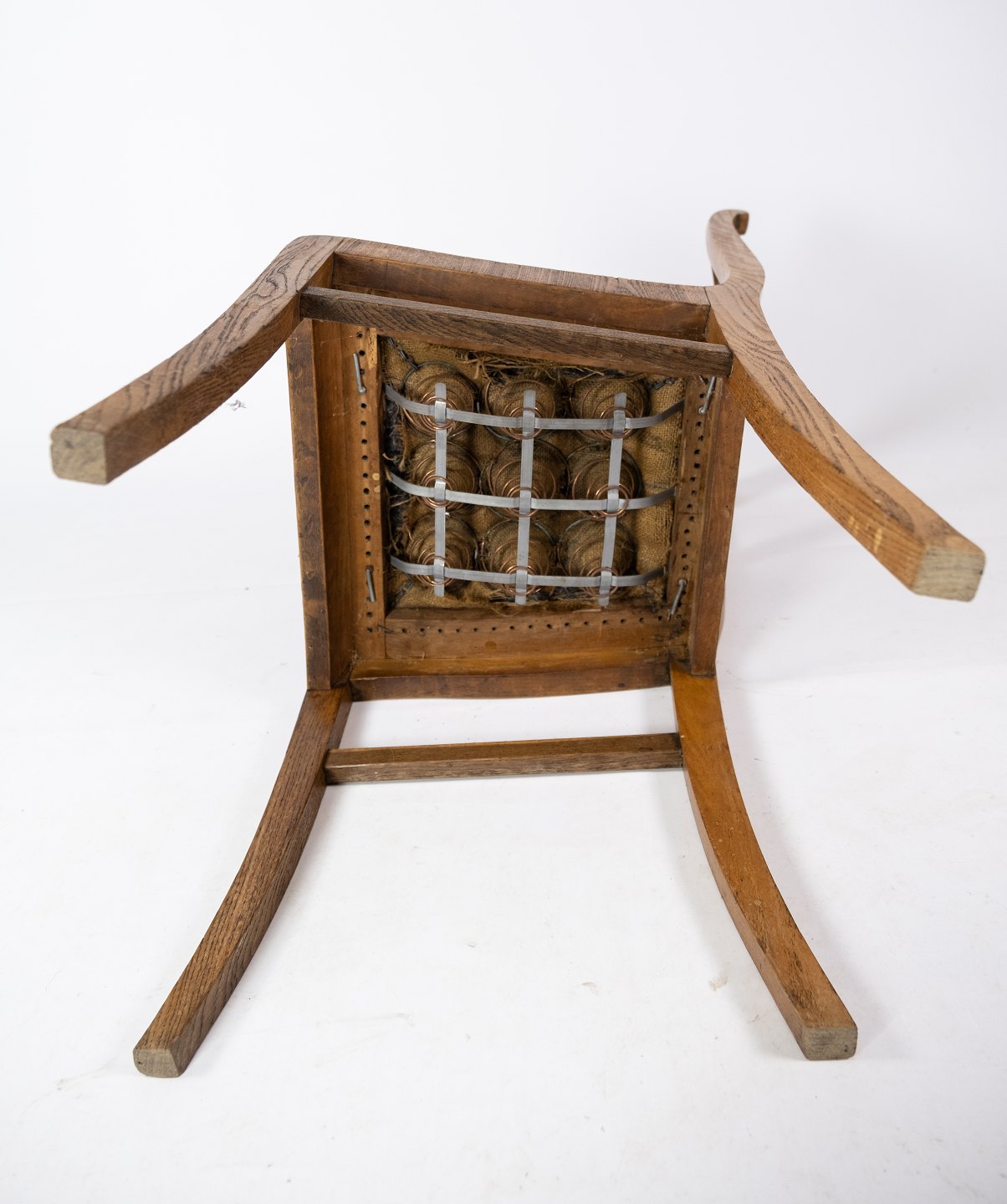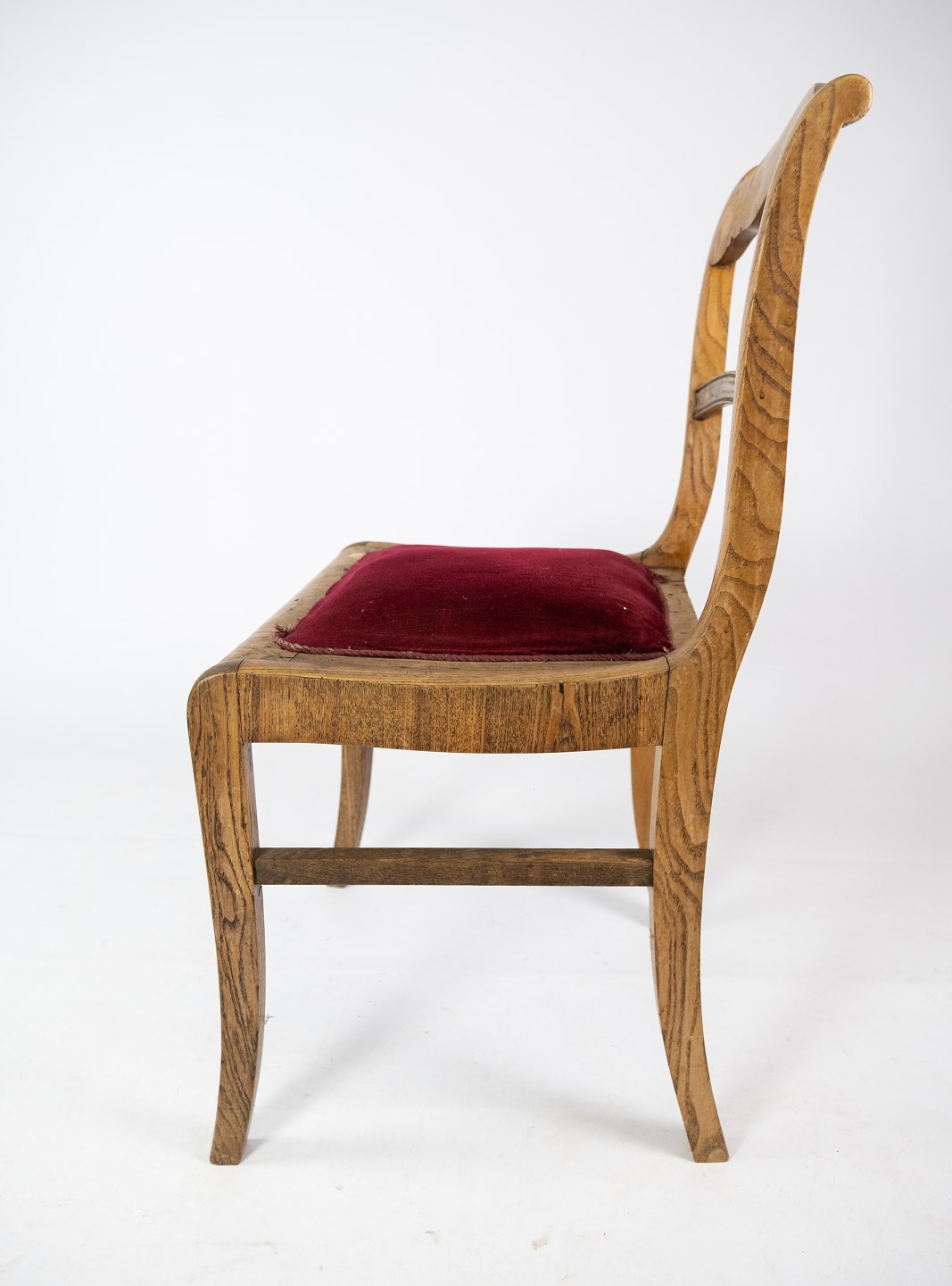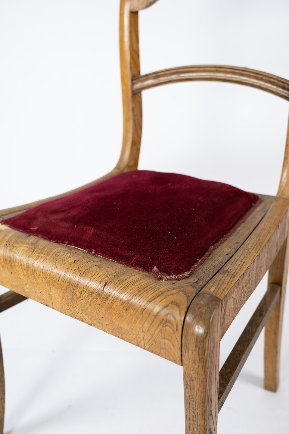 Antique chair of elm wood and upholstered with red velvet from the 1920s. The chair is in great vintage condition.