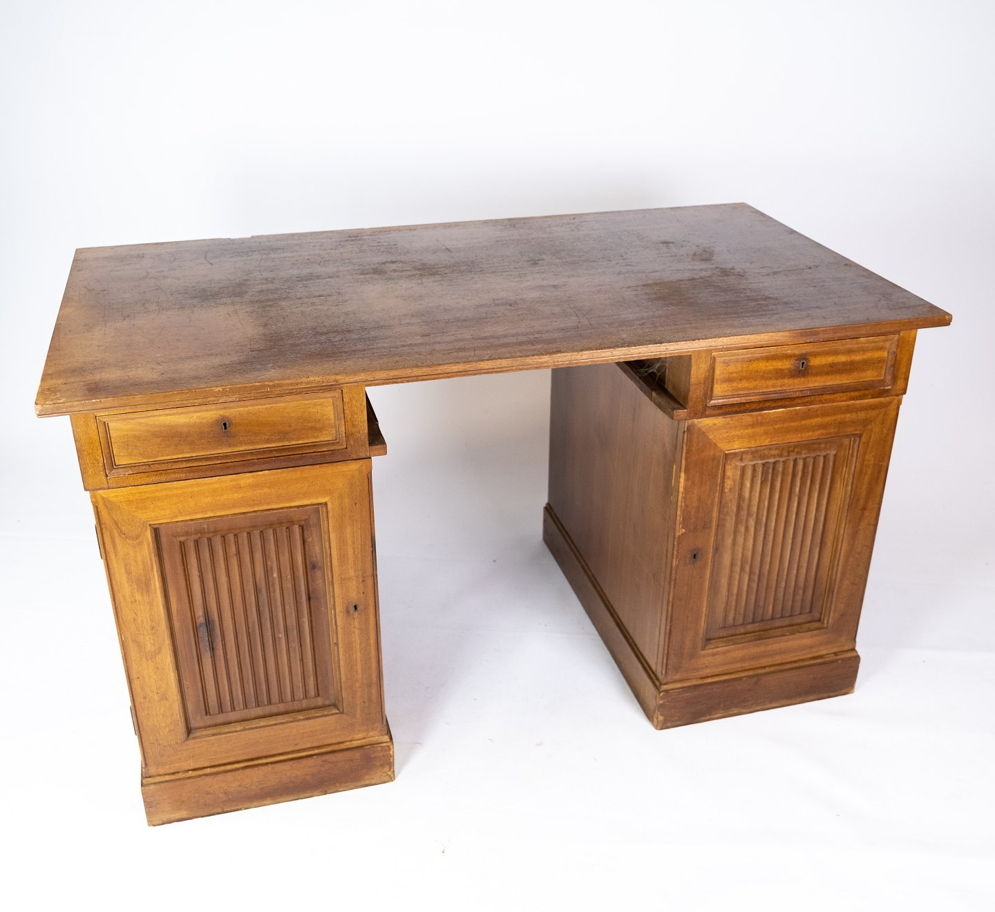 SolgtKasseskrivebord af lys mahogni, i flot antik stand fra 1920erne.