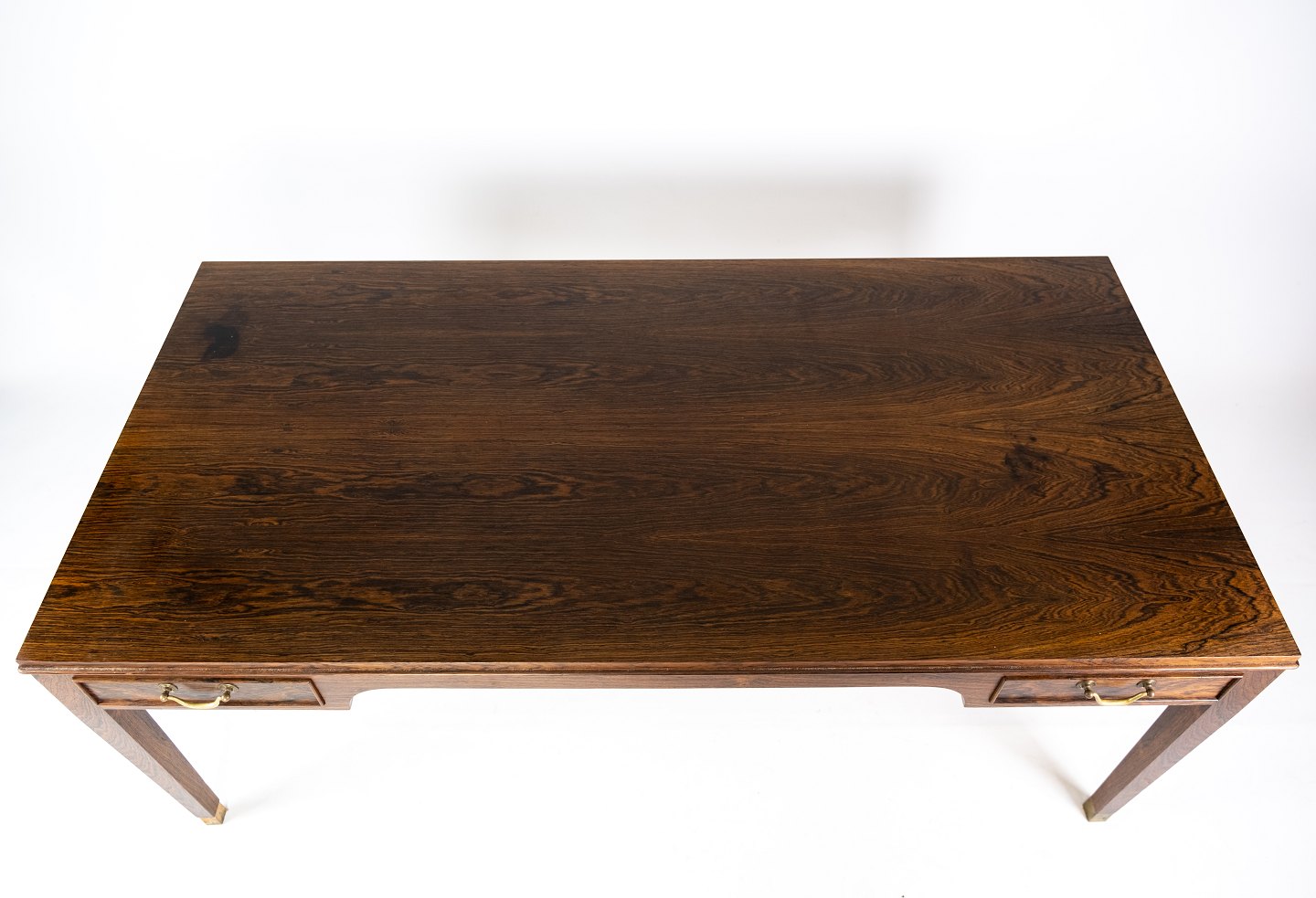 Bordet er fremstillet i palisander, et træ kendt for sine rige, dybe farver og smukke åremønstre. Palisanderens naturlige skønhed gør hvert bord unikt og tilføjer et strejf af luksus til ethvert rum. Bordets design er karakteriseret ved rene linjer og en minimalistisk form, hvilket giver det et tidløst udseende, der kan integreres i både moderne og klassiske interiører.