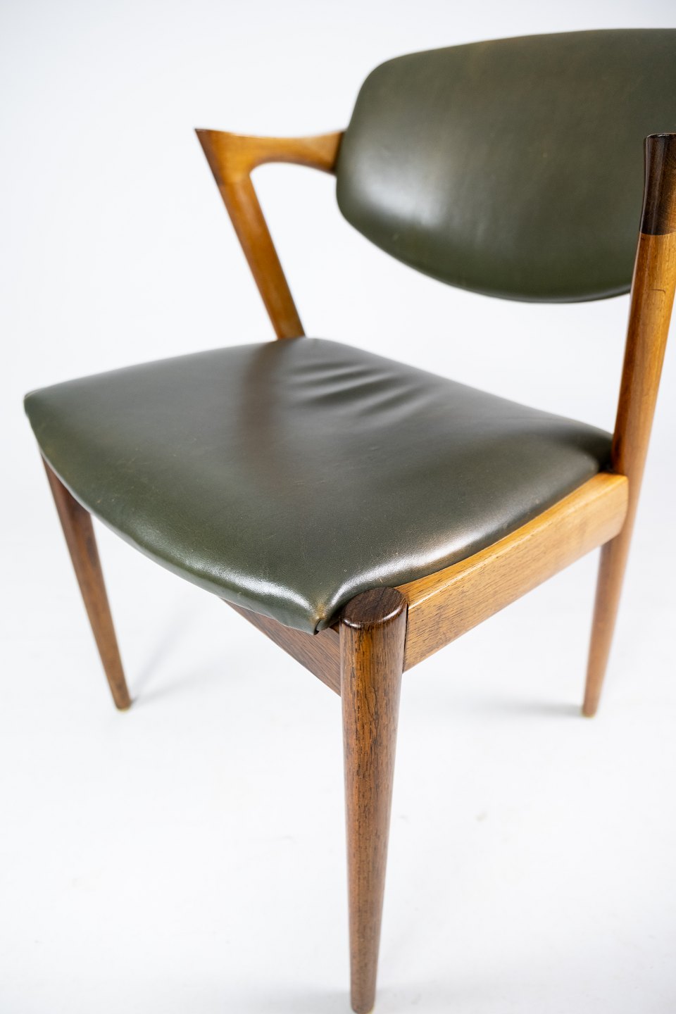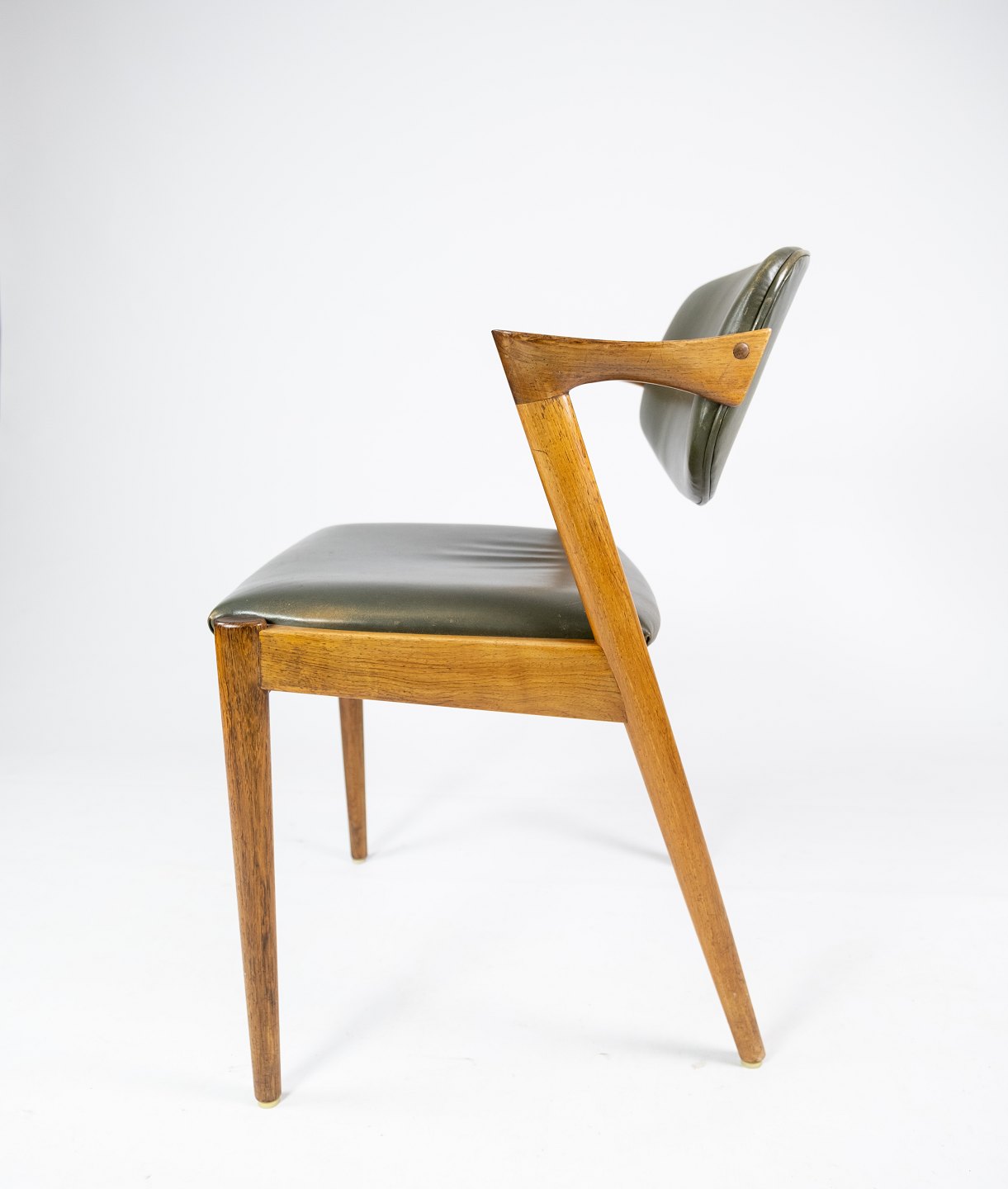 Vi køberEt sæt af spisestuestole, model 42, designet af Kai Kristiansen og fremstillet hos Schou Andersen i 1960'erne, repræsenterer essensen af dansk mid-century modern design. Kai Kristiansen, kendt for sin innovative tilgang til møbeldesign, har skabt disse stole med fokus på både æstetik og komfort.