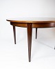 This rosewood dining table is a beautiful example of Danish design from the 1960s and is made by Omann Junior, a renowned Danish furniture manufacturer. The rosewood's characteristic warm tones and beautiful veins give the table a timeless elegance and a unique aesthetic appeal.