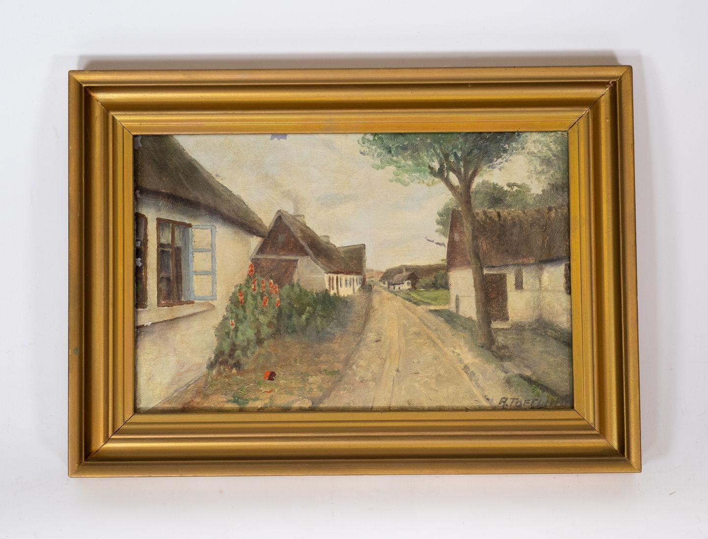 Oil painting with country motif and gilded frame, signed A. Toftlind.