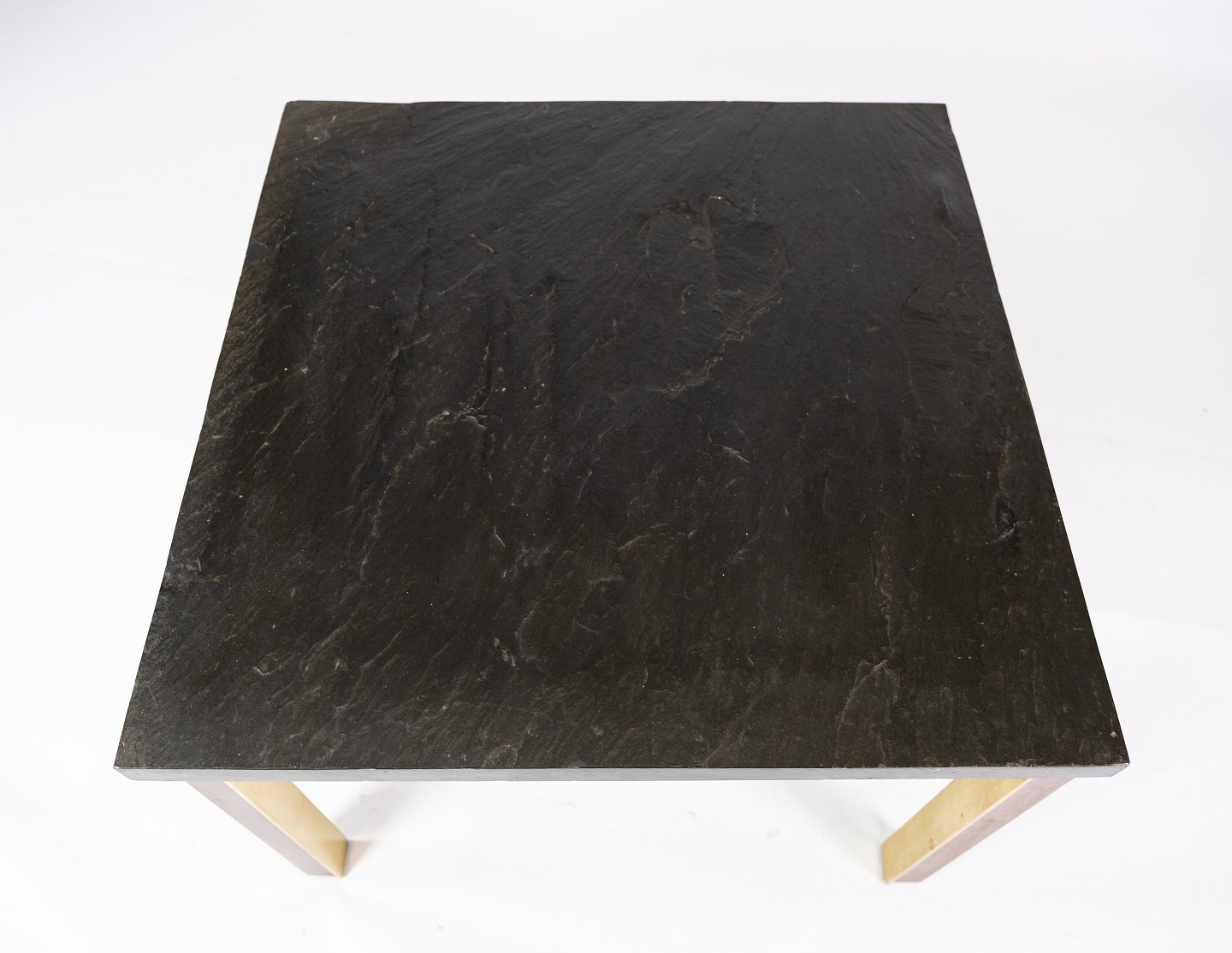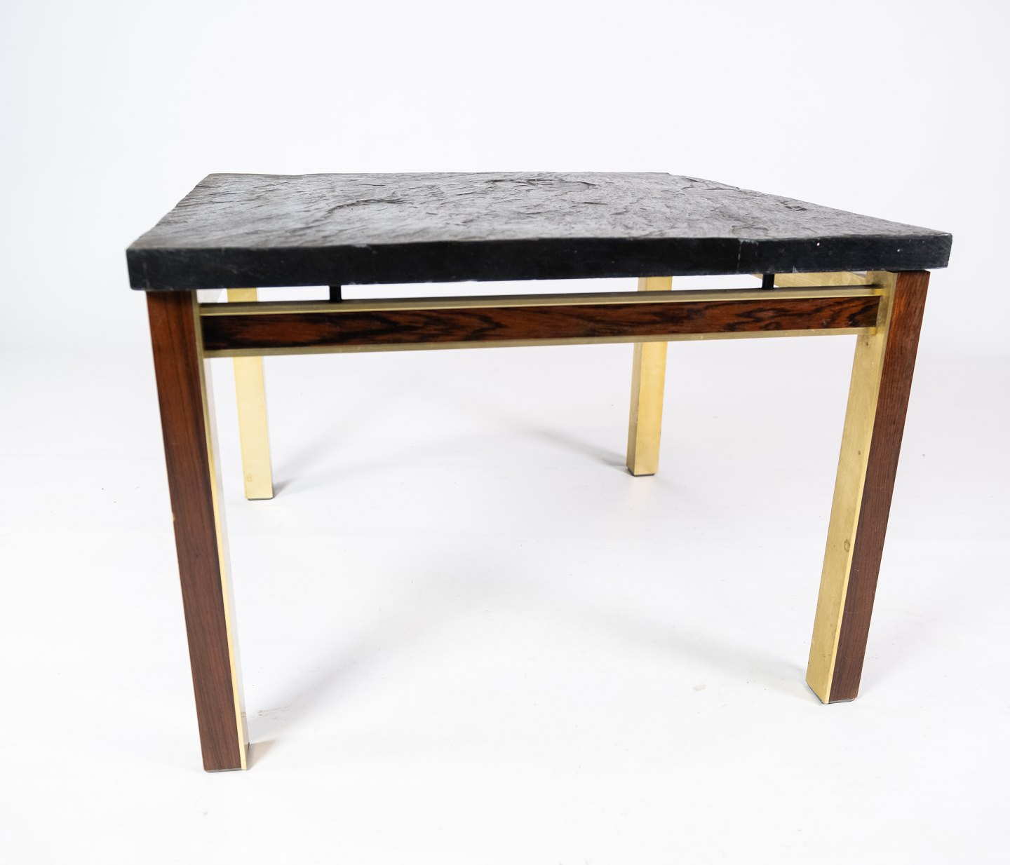 Coffee table with slate plate, frame of gilded metal and rosewood by Bendixen Design from the 1970s. The table is in great used condition.