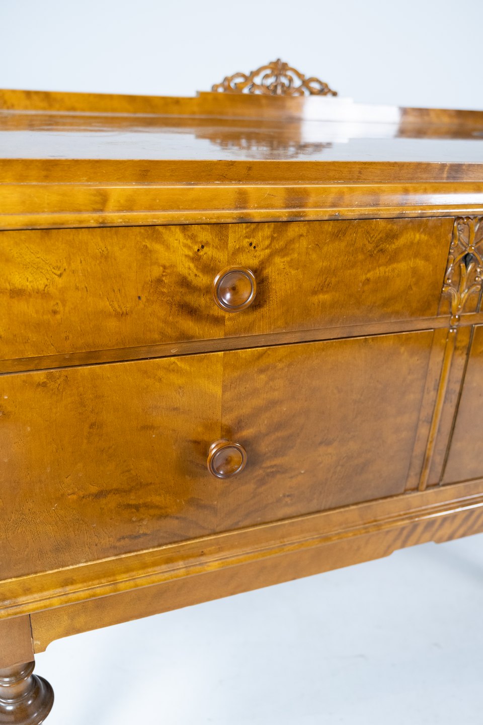 Kommode i birketræk med udskæringer, i flot antik stand fra 1930erne.