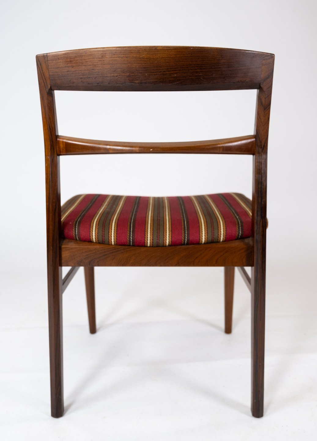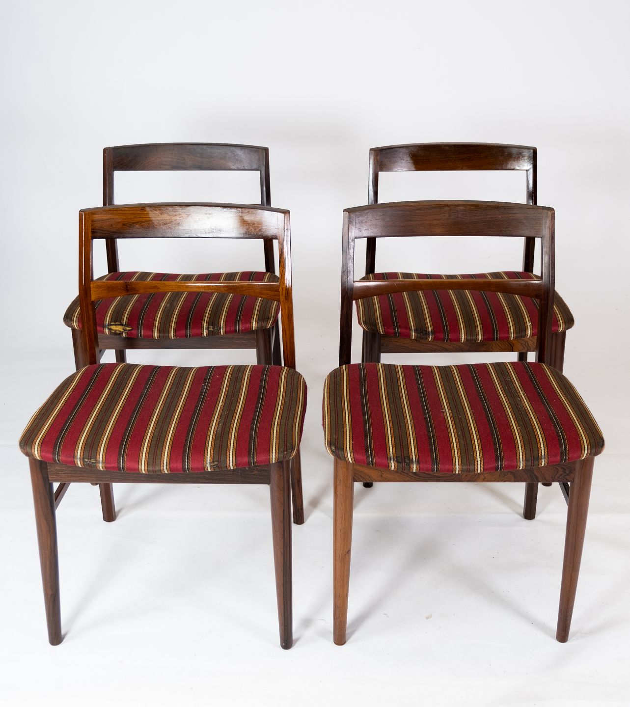 Sæt Af Fire Spisestuestole - Palisander - Stribet Stof - Dansk Design - 1960