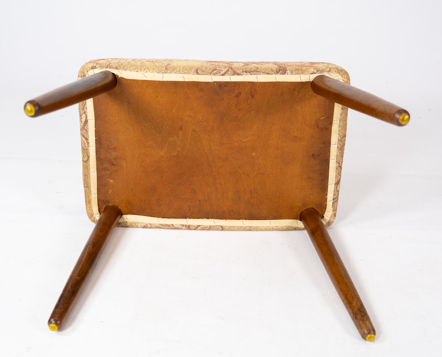 Stool - Teak - Flowered Fabric - Danish Design - 1970