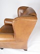 Stor hvilestole/øreklapstol i cognacfarvet læder. Stolen er i flot brugt stand.
