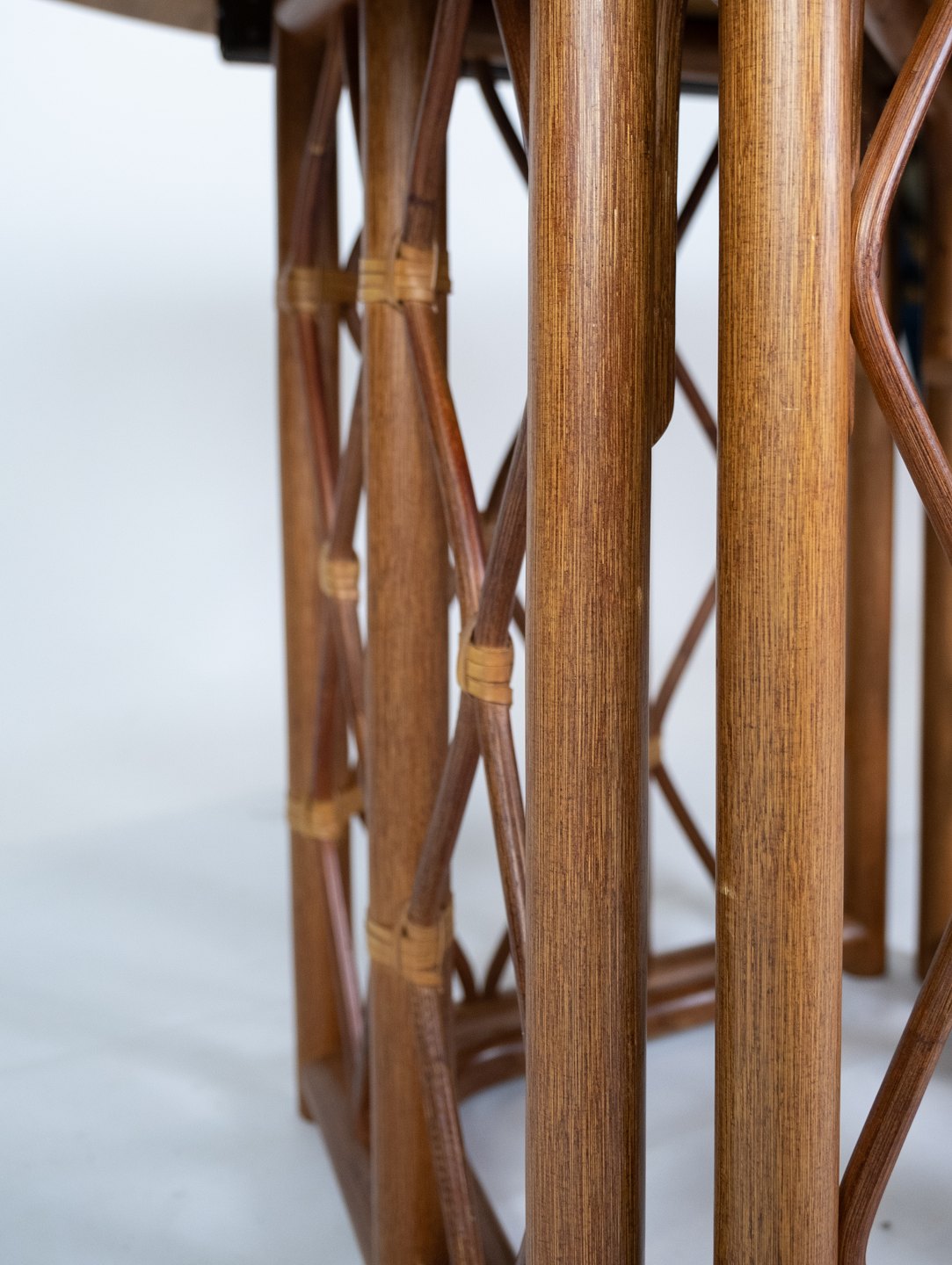 Spisebord i eg med to udtræksplader af dansk design fra 1960erne. Bordet er i flot brugt stand.