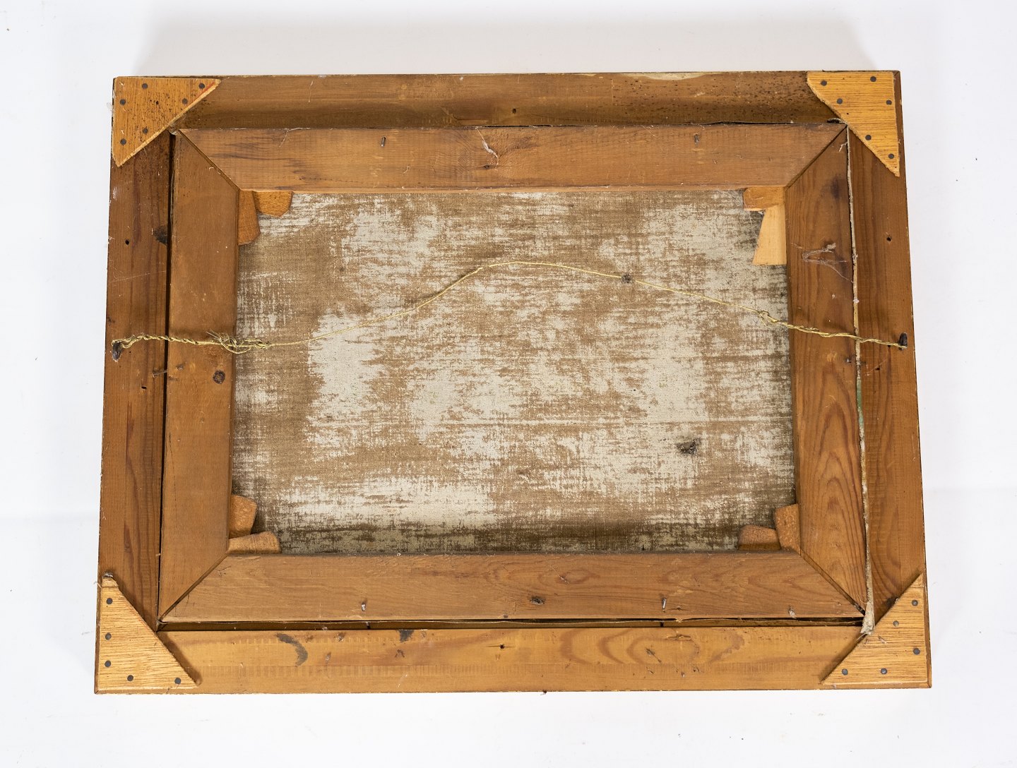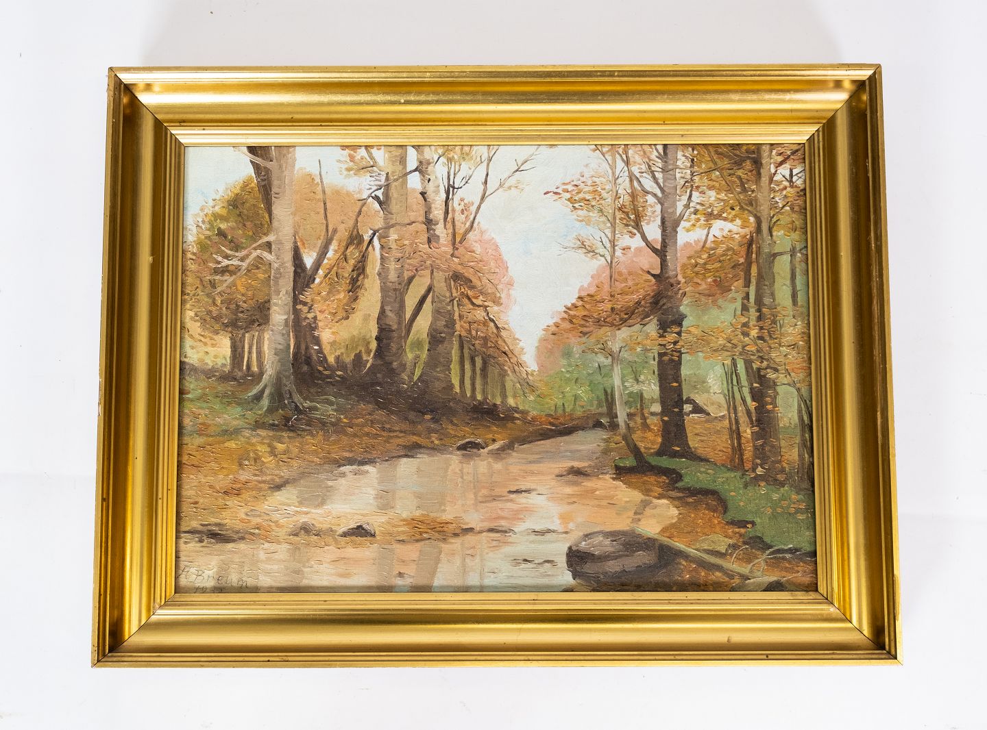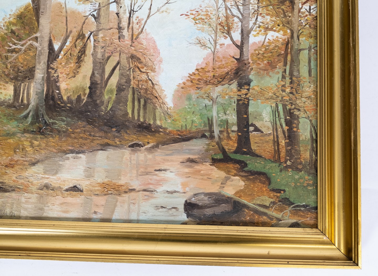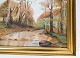 Oliemaleri med motiv skoven i efteråret og forgyldt ramme. fra 1920erne.