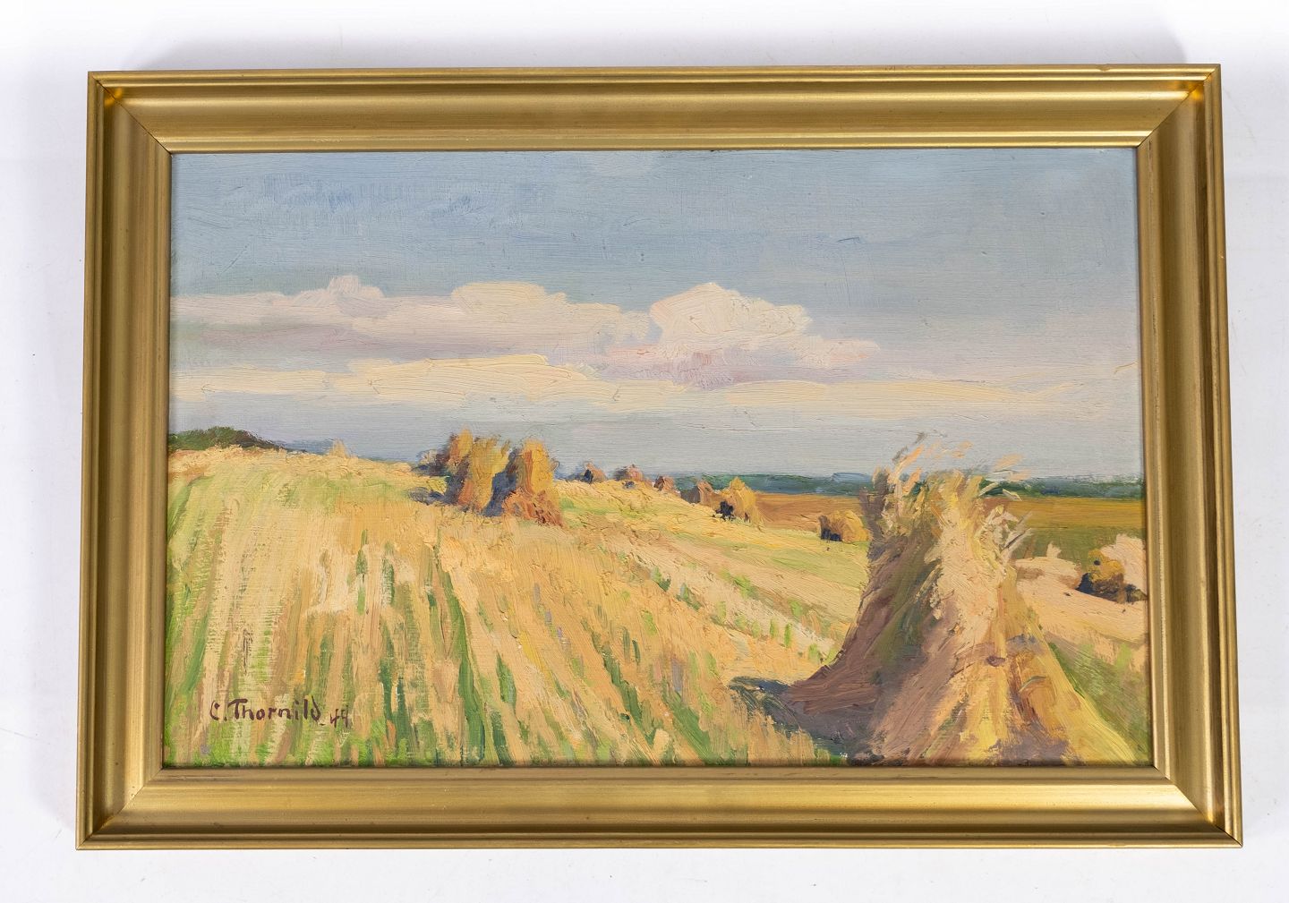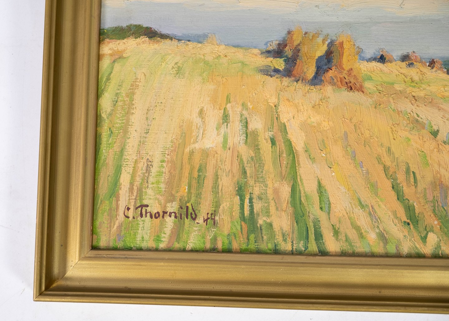 Oliemaleri med natur motiv og med forgyldt ramme signeret af C. Thornild fra 1944.