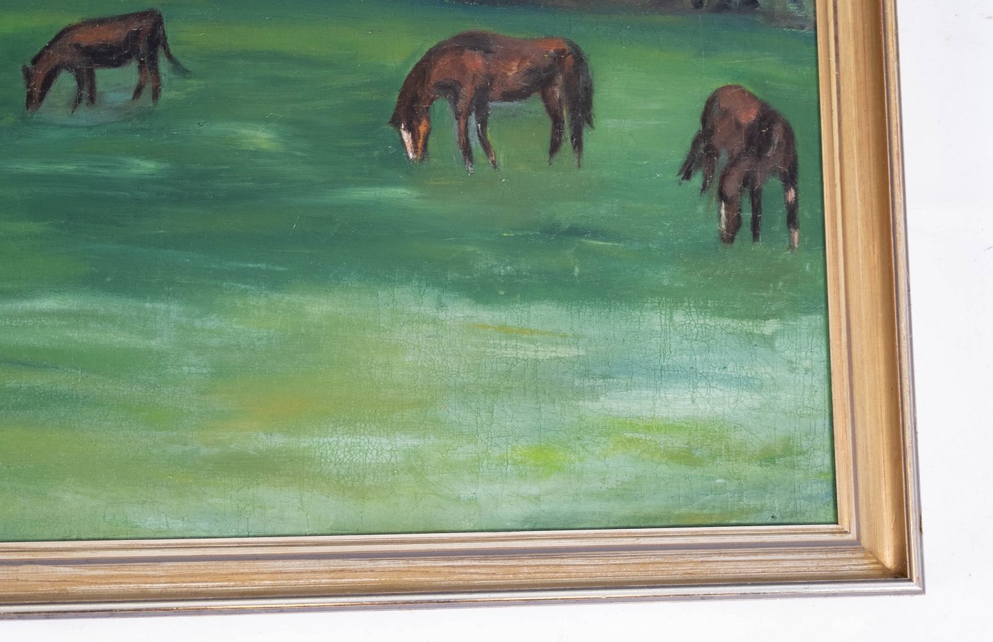 Oil painting with motif of horses and with gilded frame from the 1920s.