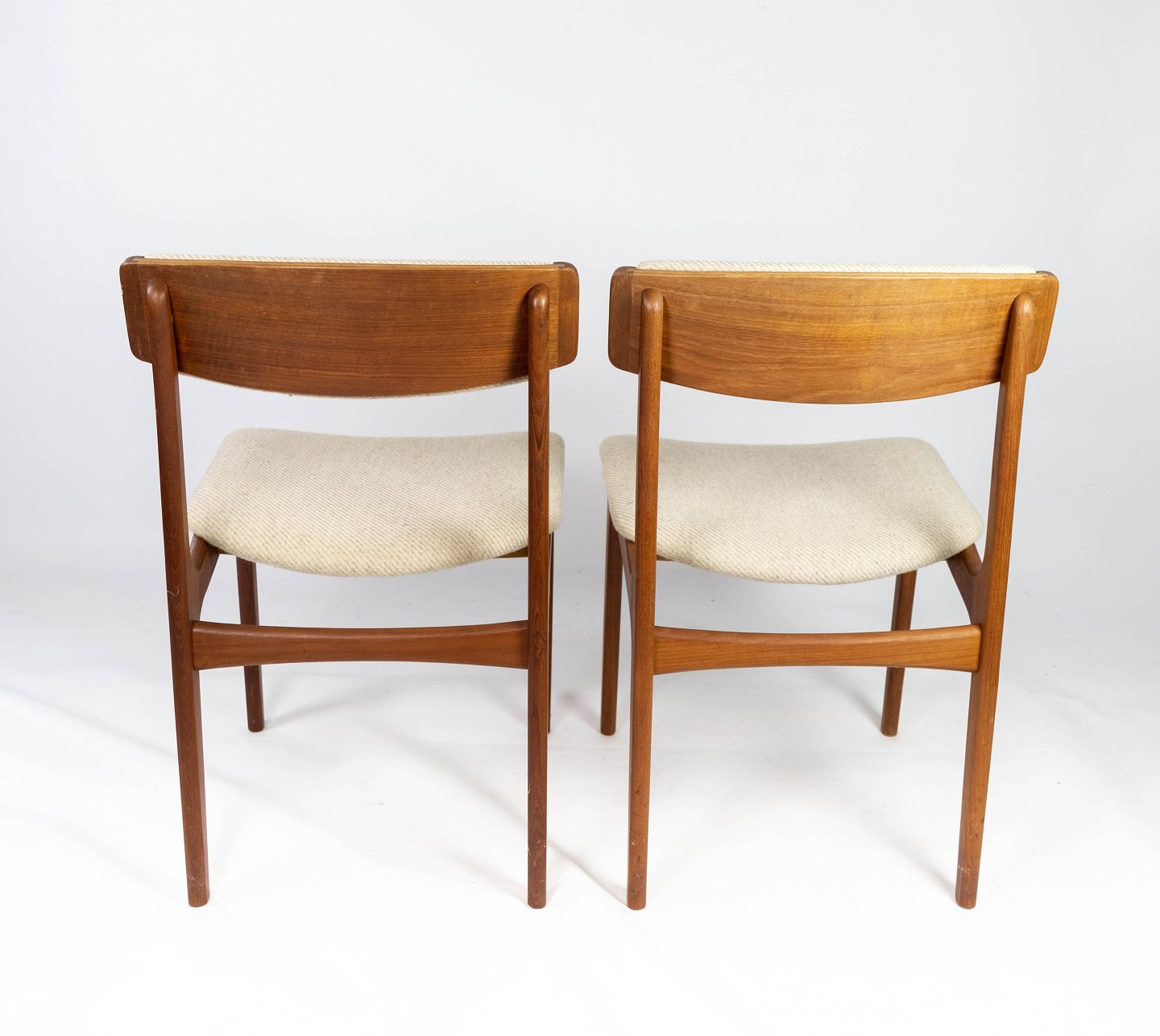 Set of two dining room chairs in teak and upholstered with light Hallingdal wool fabric of danish design from the 1960s. The chairs are in great vintage condition.