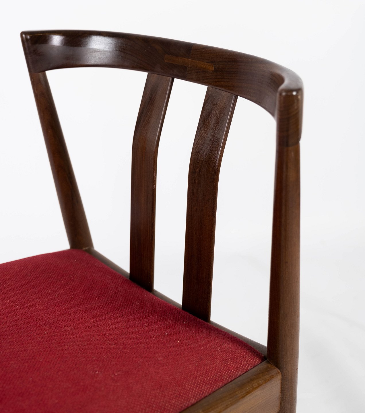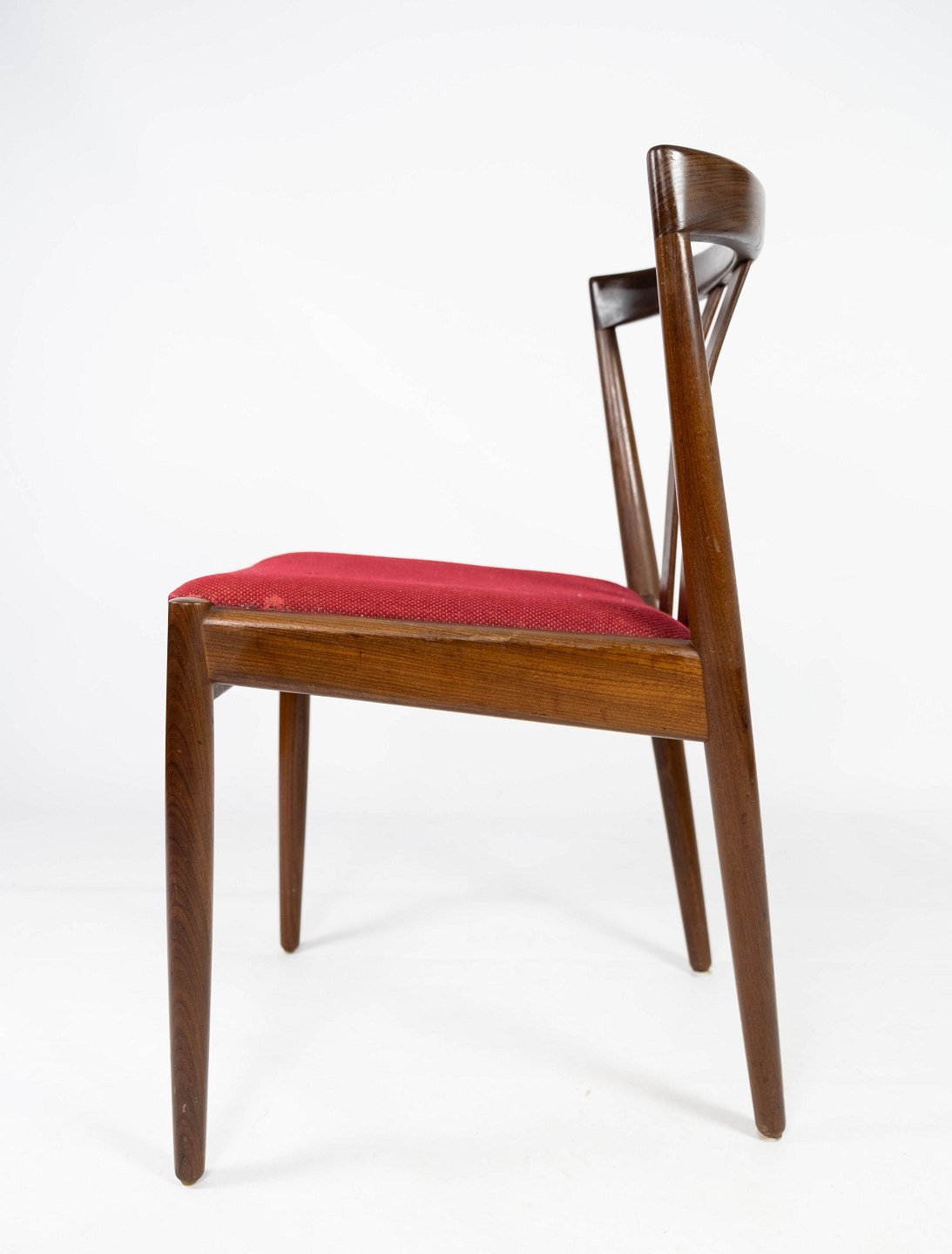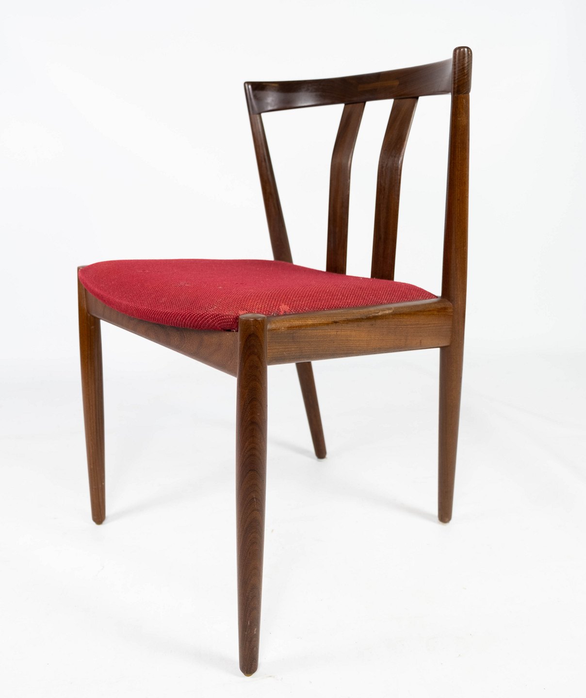 Dining room chair in teak and upholstered with red fabric of danish design from the 1960s. The chair is in great vintage condition.