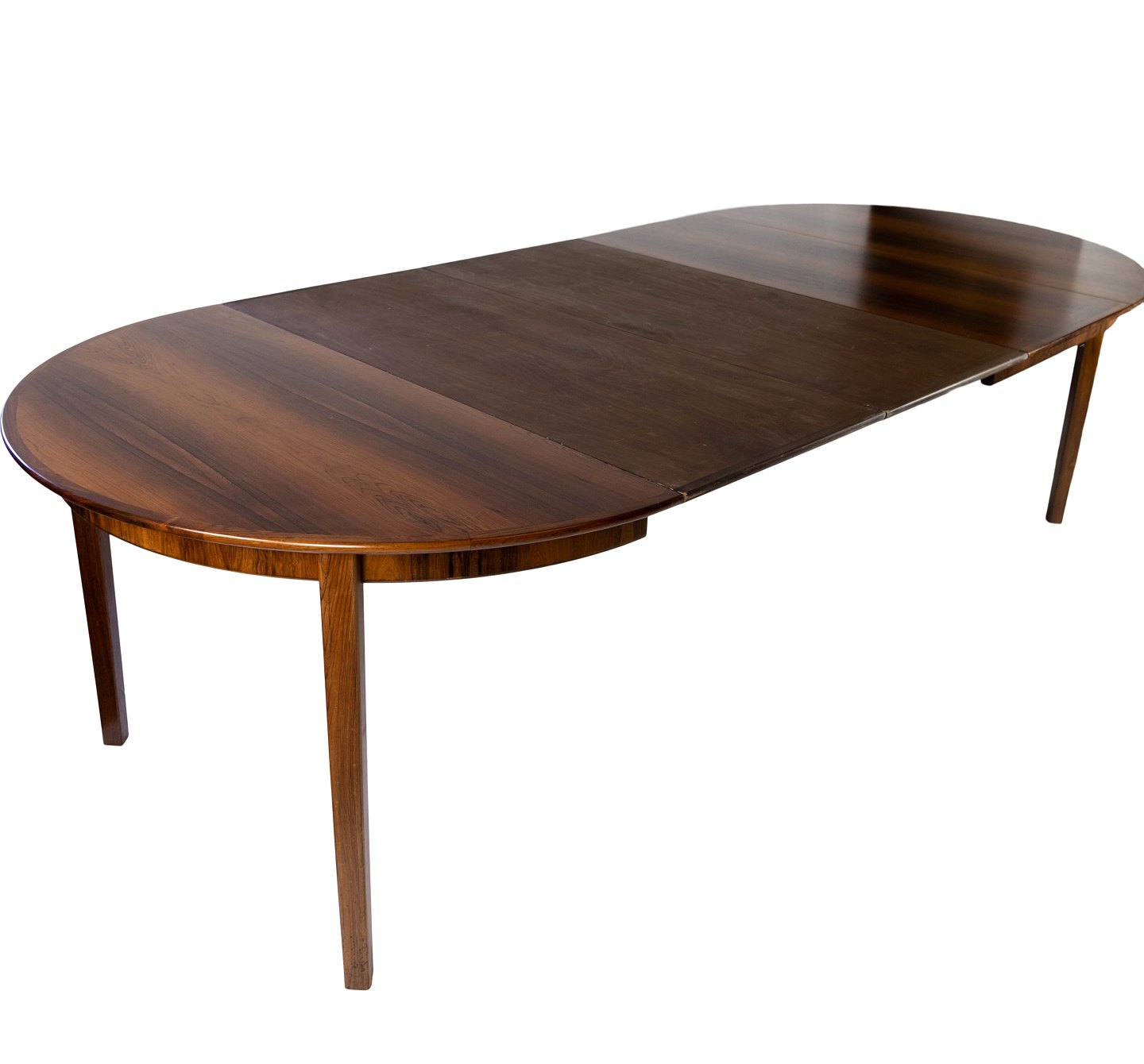 Dining table in rosewood with three extension plates, of danish design from the 1960s.