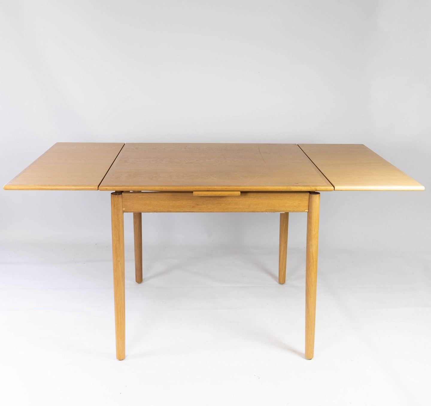 Spisebord i eg med hollandsk udtræk af dansk design fra 1960erne. The table is in great vintage condition.