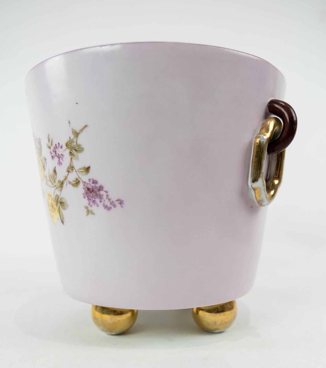 Flowerpot in light colours decorated with flowers, in great vintage condition from the 1870s.