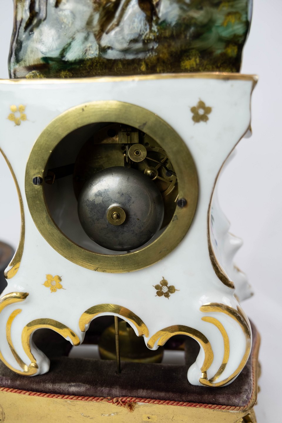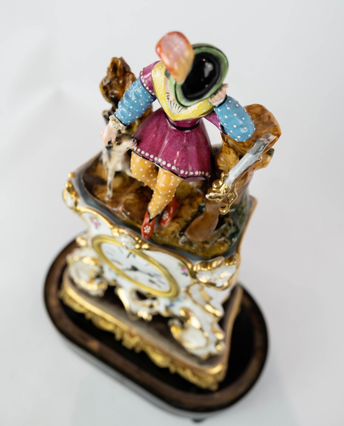 Fransk bordur med glaskuppel og dekoreret med figur af porcelæn fra 1860.