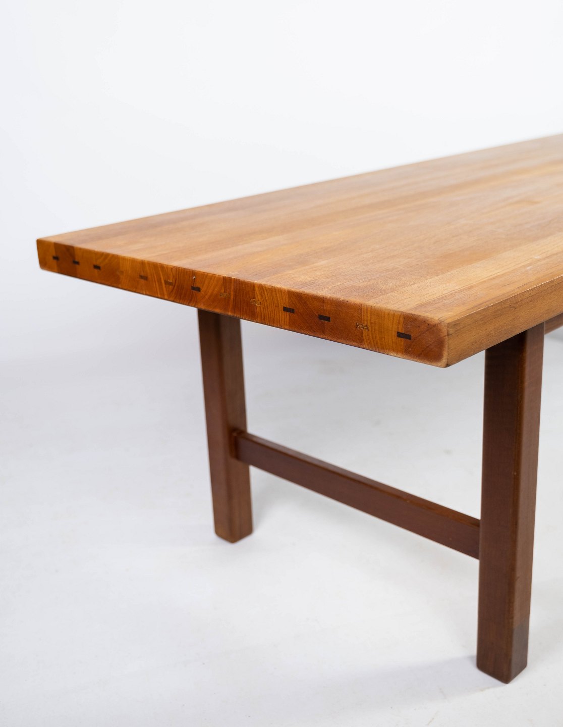 This coffee table in teak from the 1960s is characterized by the excellent craftsmanship and timeless aesthetics that Edmund Jørgensen Møbelfabrik is known for. With its elegant design and beautiful wooden structure, the table adds a warm and welcoming atmosphere to any room.