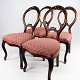 Set of four Rococo dining room chairs of mahogany and upholstered with red fabric from 1860.