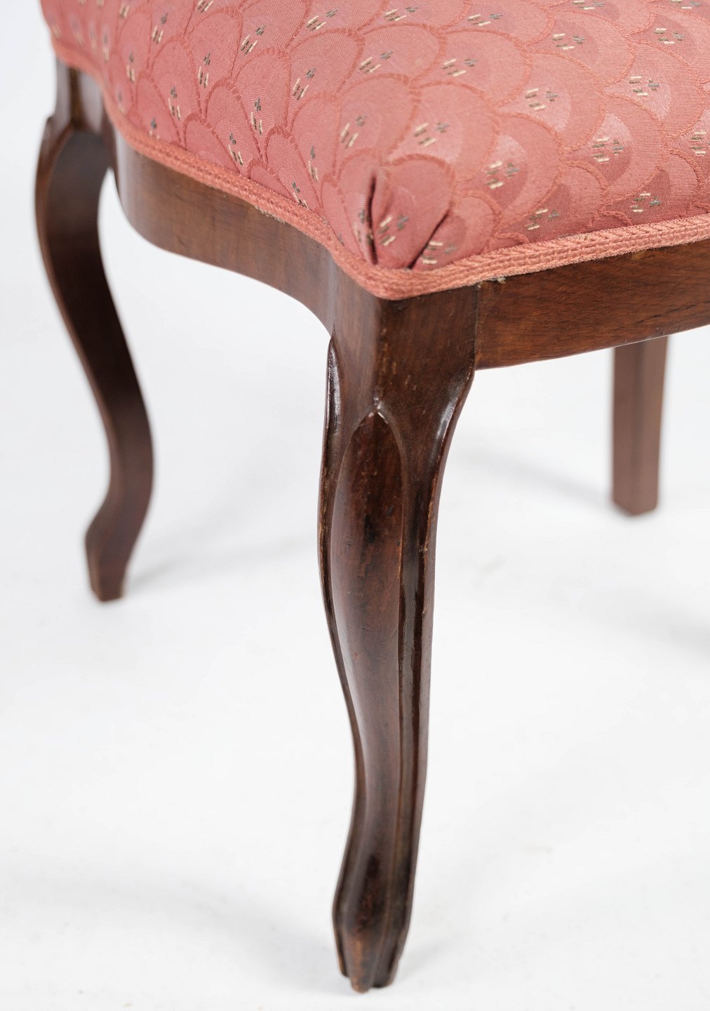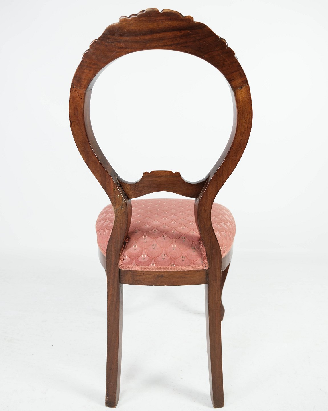 Set of four Rococo dining room chairs of mahogany and upholstered with red fabric from 1860. The chairs are in great vintage condition.