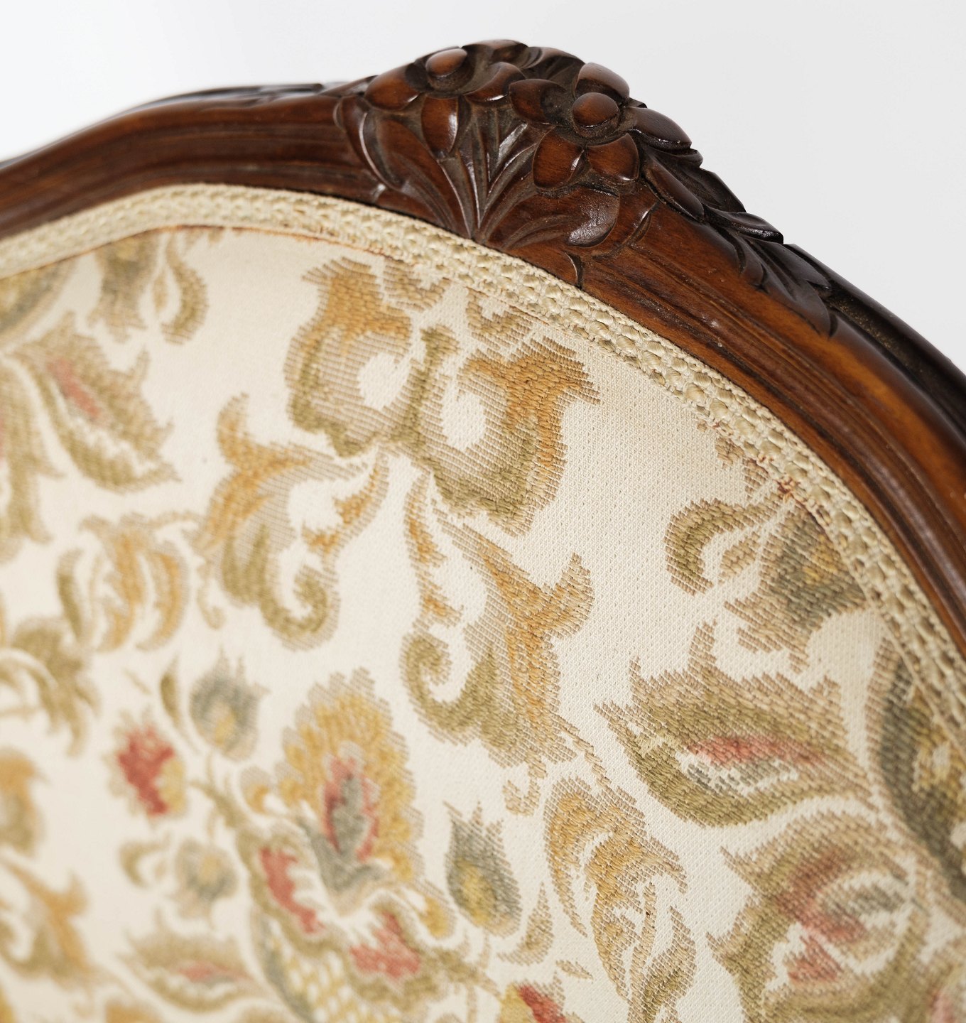 Sæt af Rokoko armstole af mahogni og polstret med lyst stof, i flot antik stand fra 1920erne.