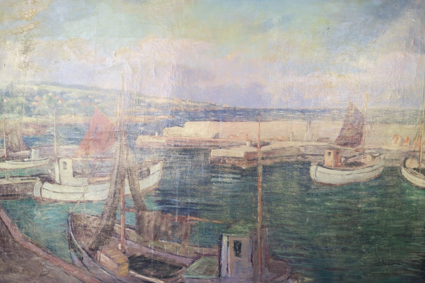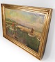 Oliemaleri med marine motiv med forgyldt ramme af Jens Aabo fra 1958 indrammet hos Kleis Vesterbro.