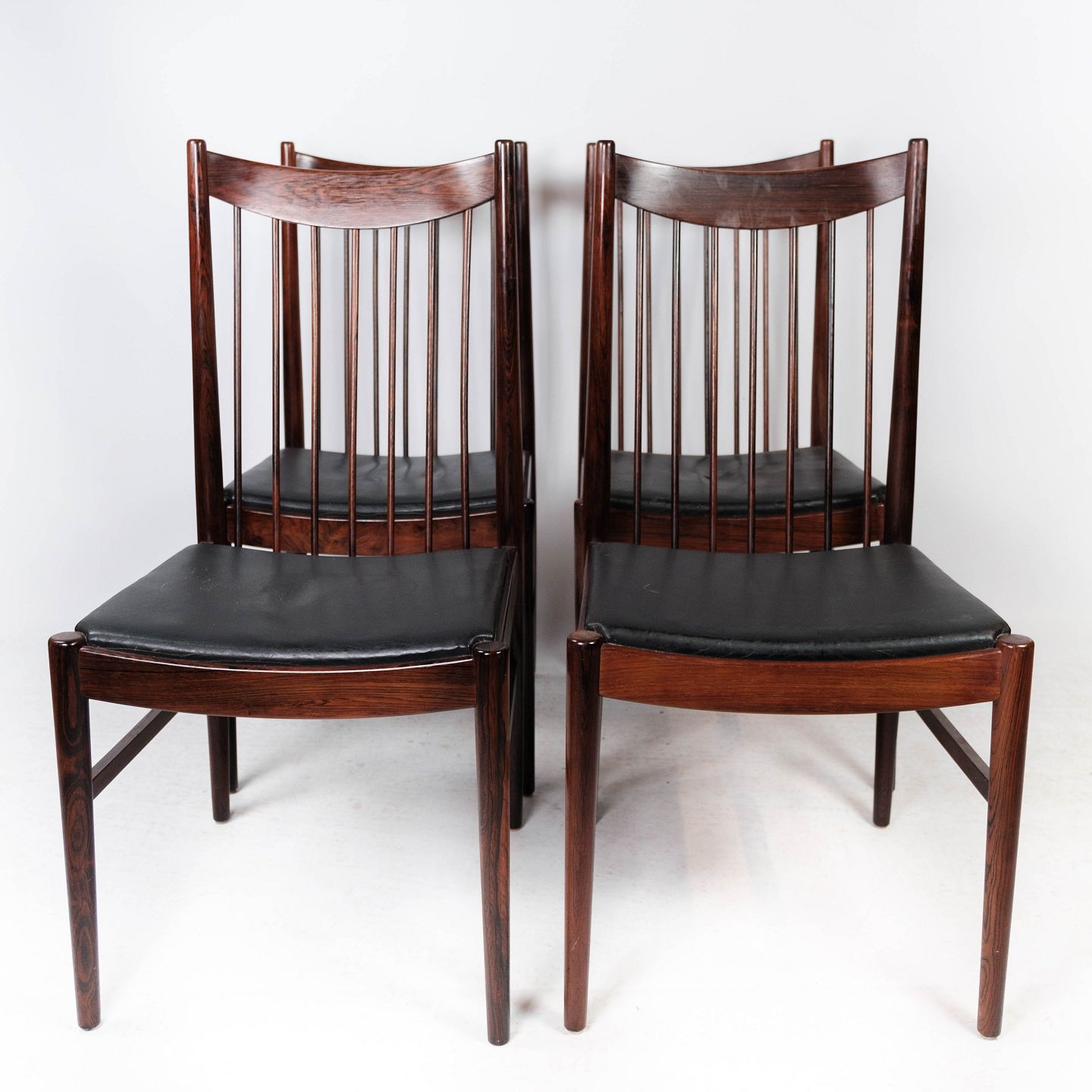 SoldSet of four dining room chairs, model 422, in rosewood and upholstered with black leather designed by Arne Vodder from the 1960s. The chairs are in great vintage condition and we have 6 in total.