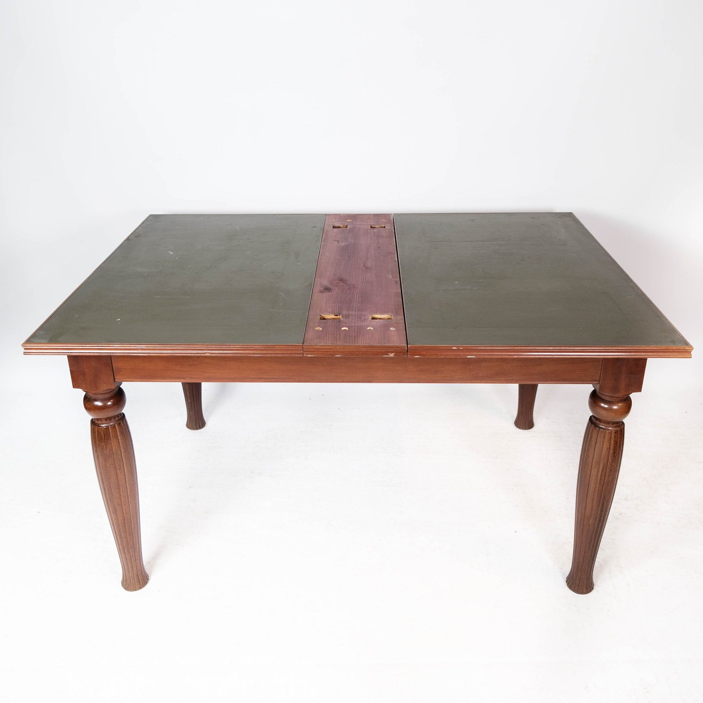 SoldDining table in mahogany with dark top plate and extensions, in great antique condition from around 1930.