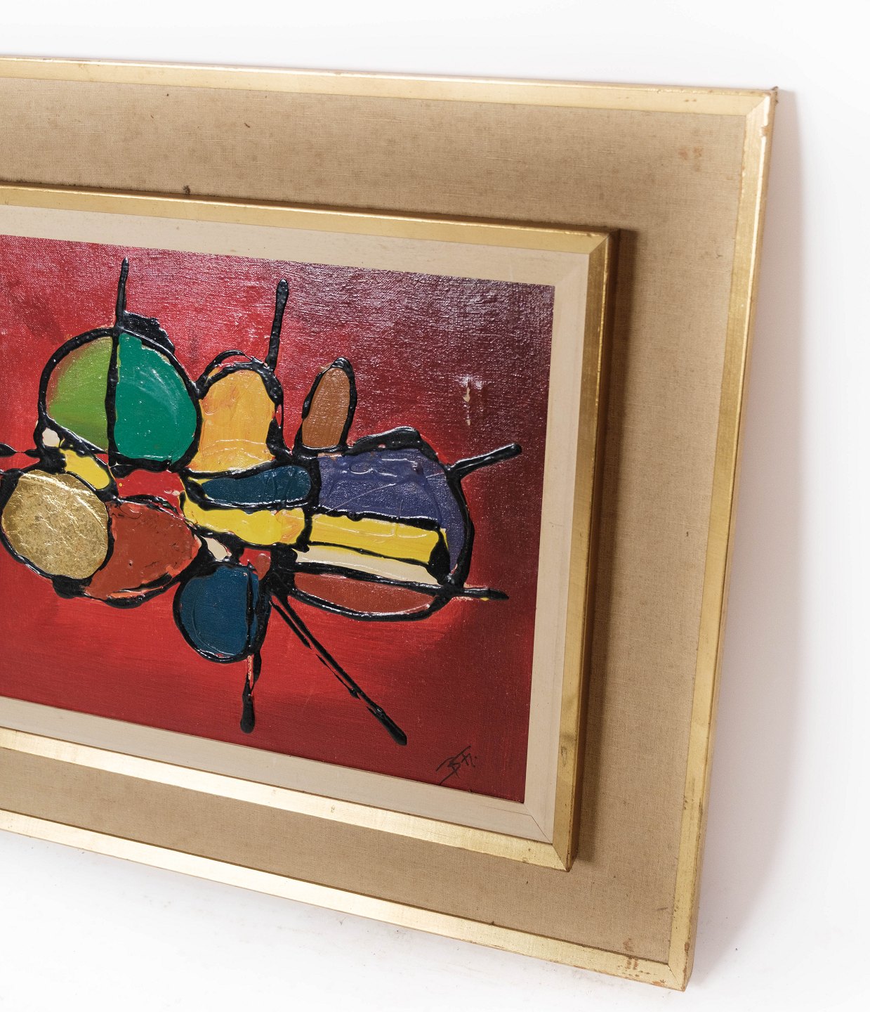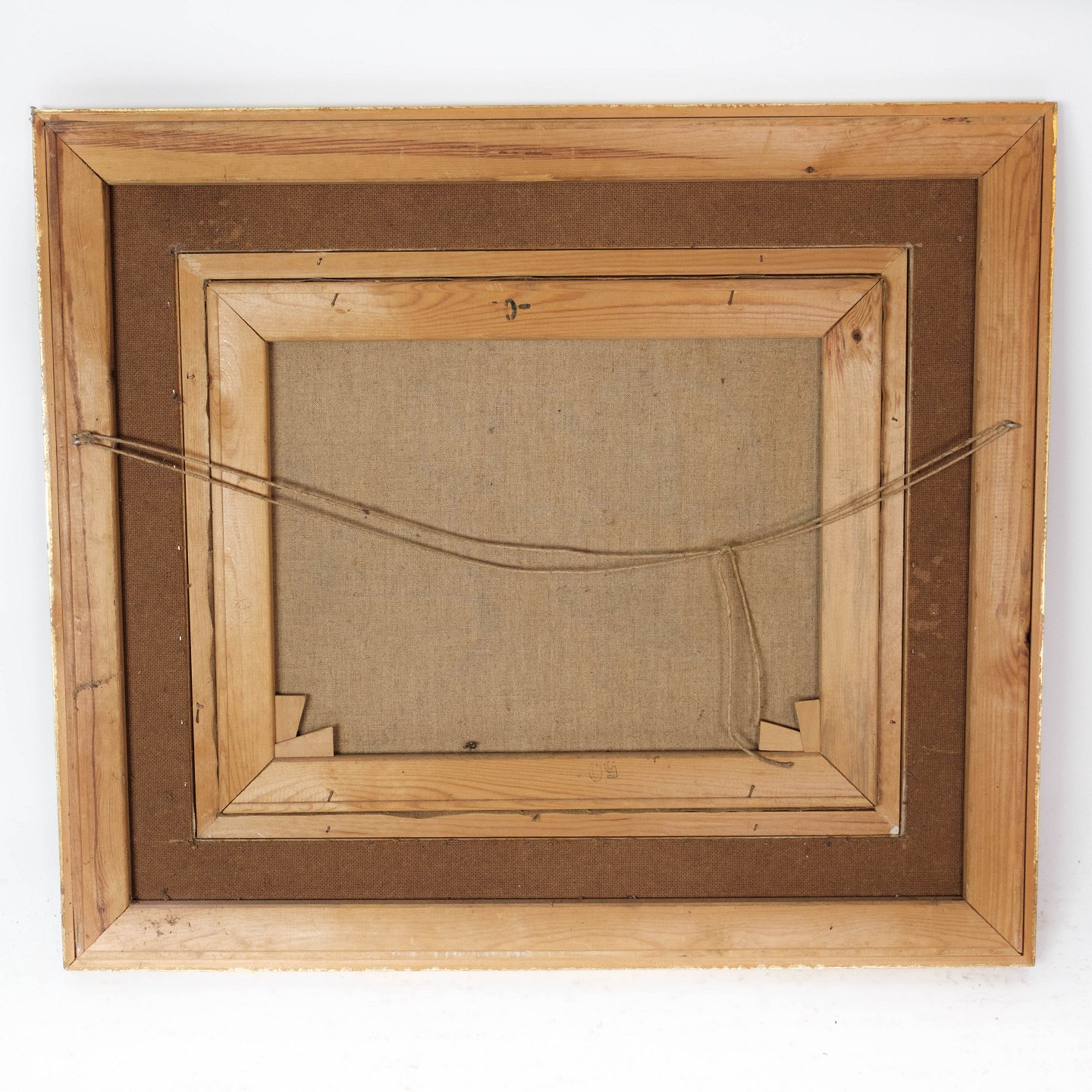 Painting on canvas in dark colors and gilded frame, signed B.F.