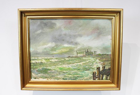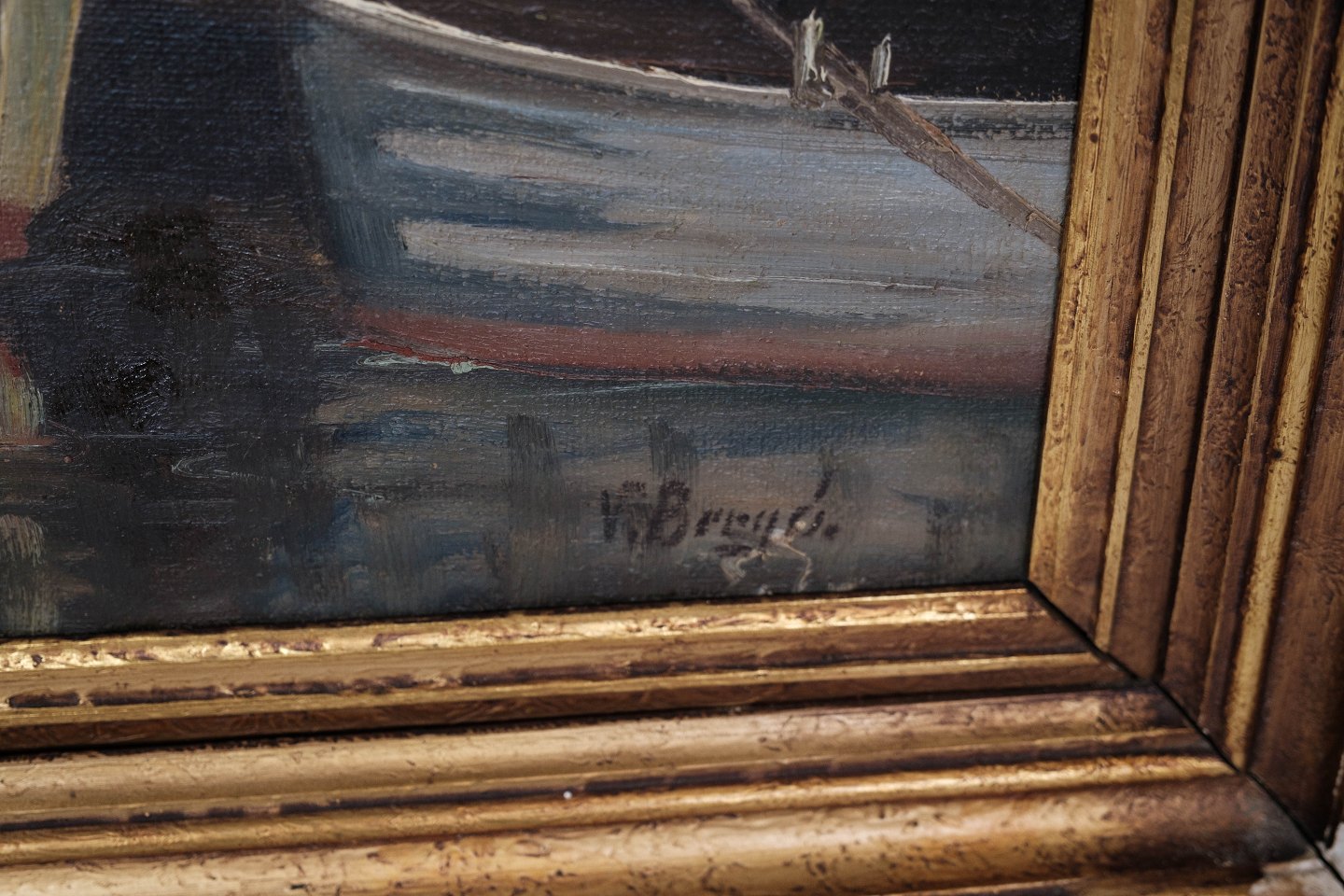 Oil painting with motif of Copenhagen and gilded frame, signed by Valdemar Brunø.