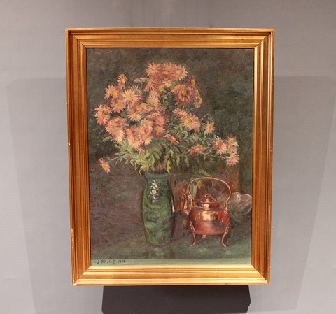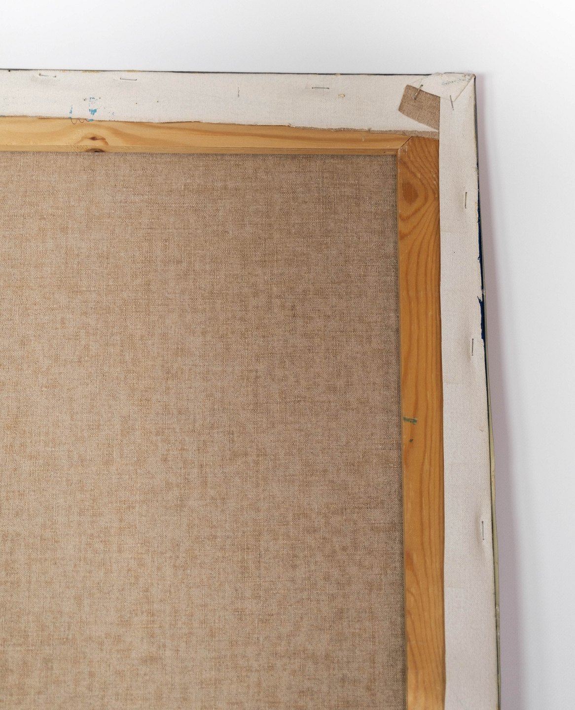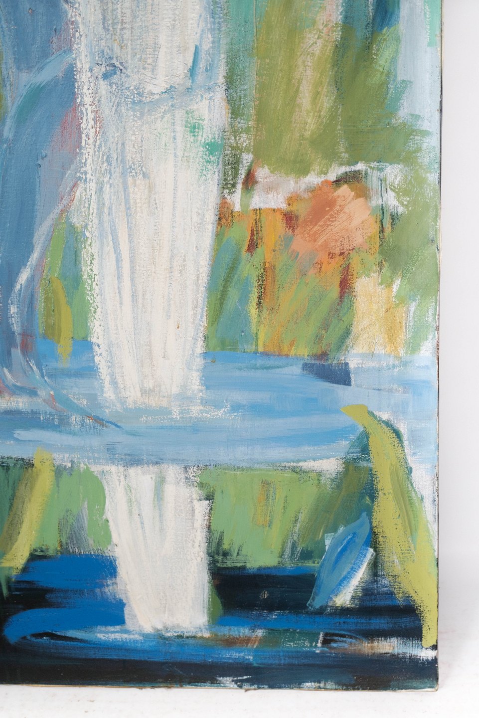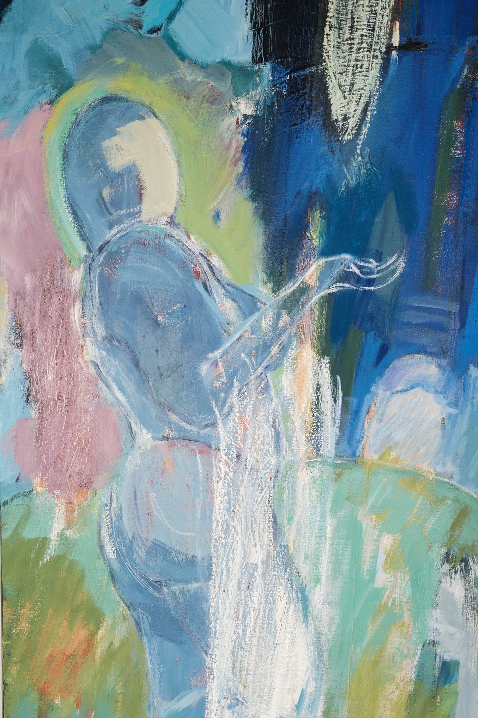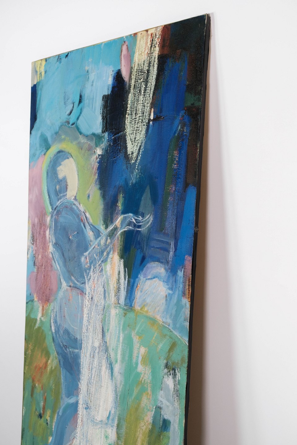 Oliemaleri på lærred i blå farver af den dansk kunster Åse Højer, f. 1952.