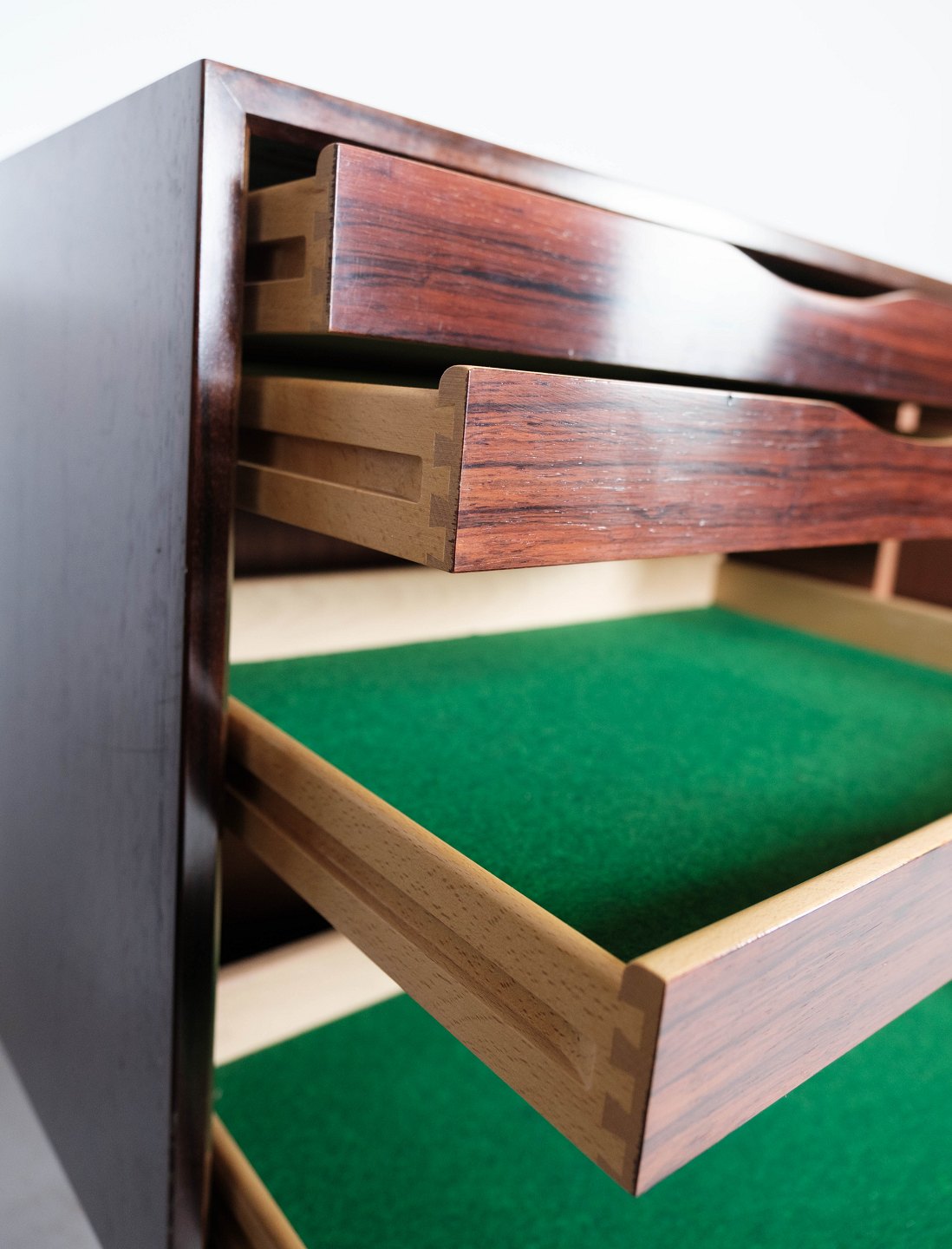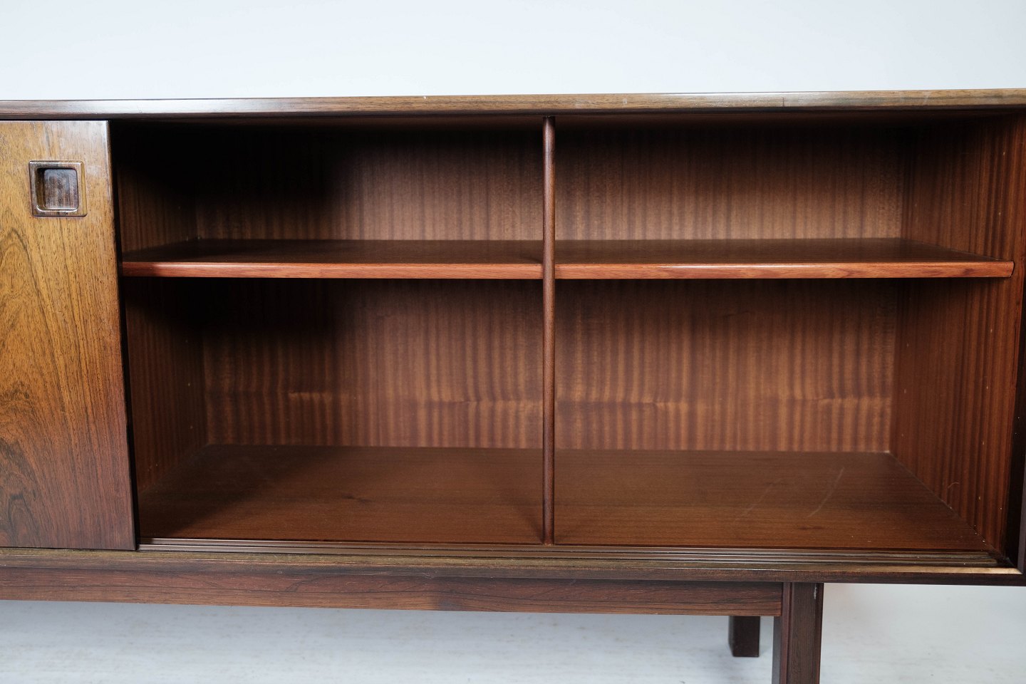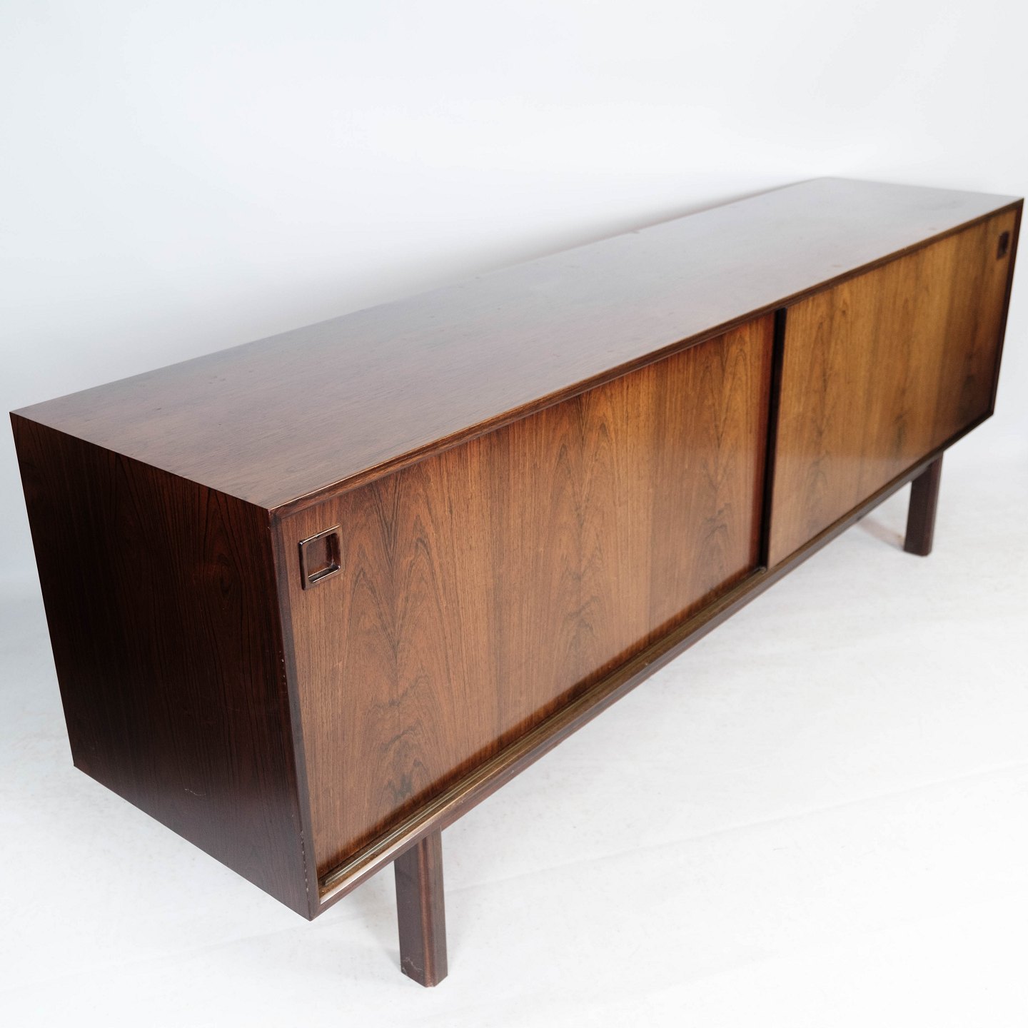 Skænk designet af Gunni Omann, model 21, fra 1960’erne. Udført i palisander og produceret af Omann Jun’s Møbelfabrik. Et eftertragtet dansk designmøbel med stor opbevaringsplads og elegant finish.