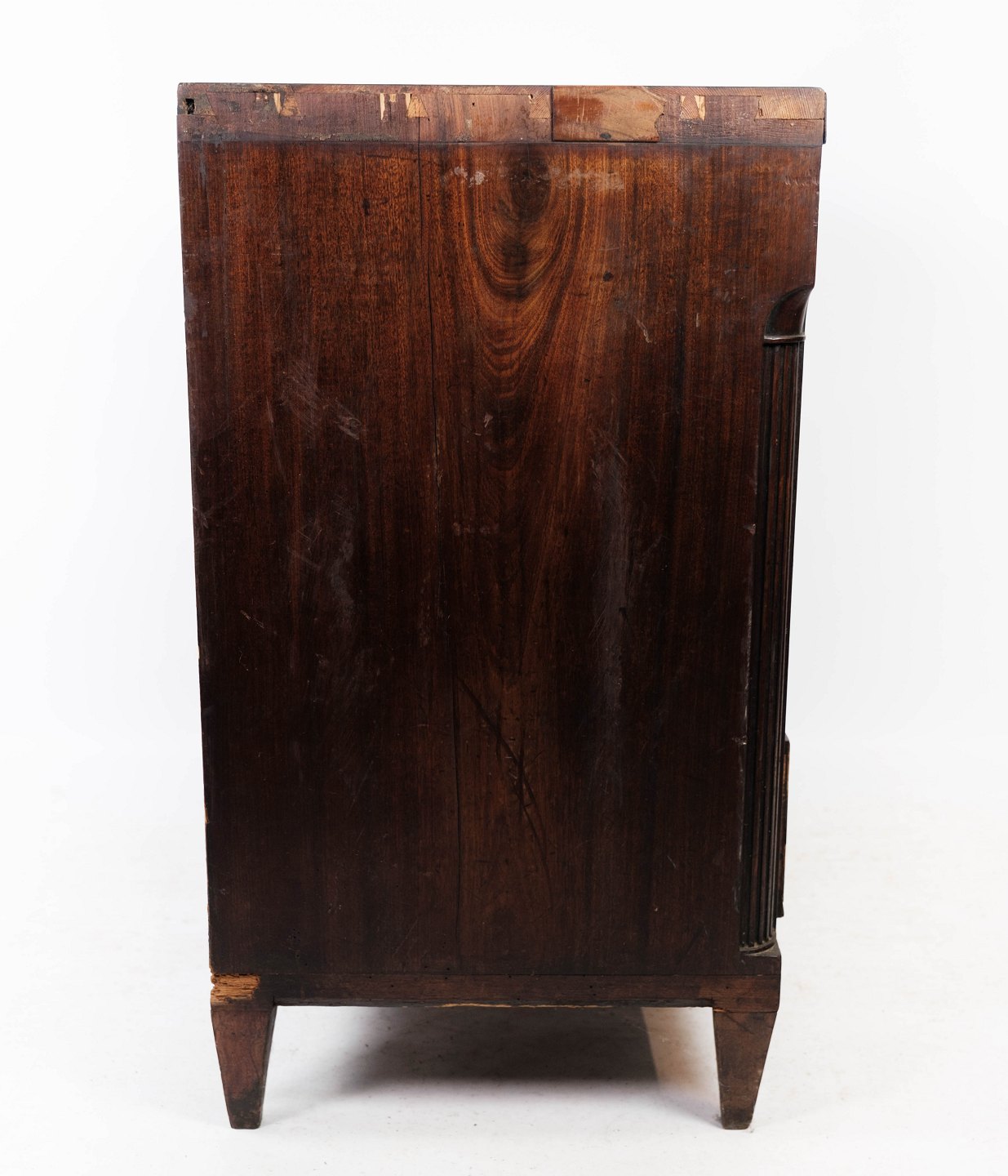 Louis Seize kommode af mahogni med intarsia. Kommoden er i flot antik stand.