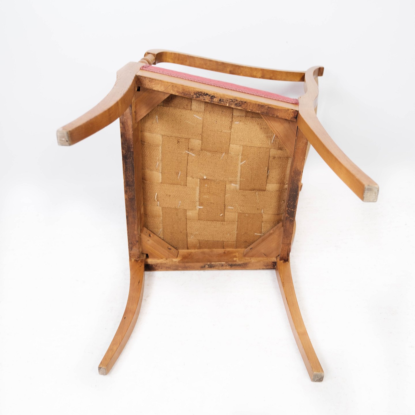 Et par sen Empire armstole af birketræ og polstret med velour, fra omkring 1840erne. Stolene er i flot antik stand.