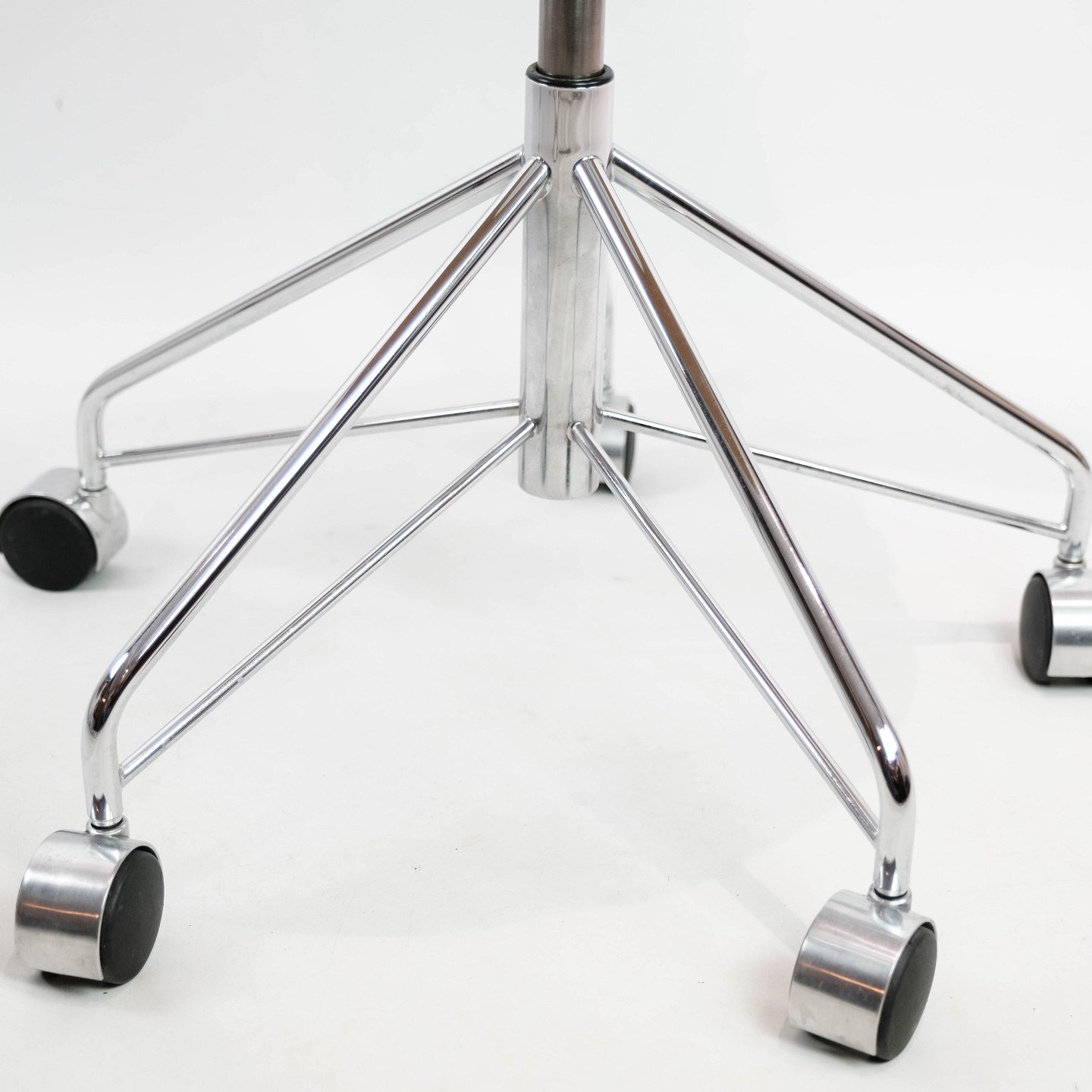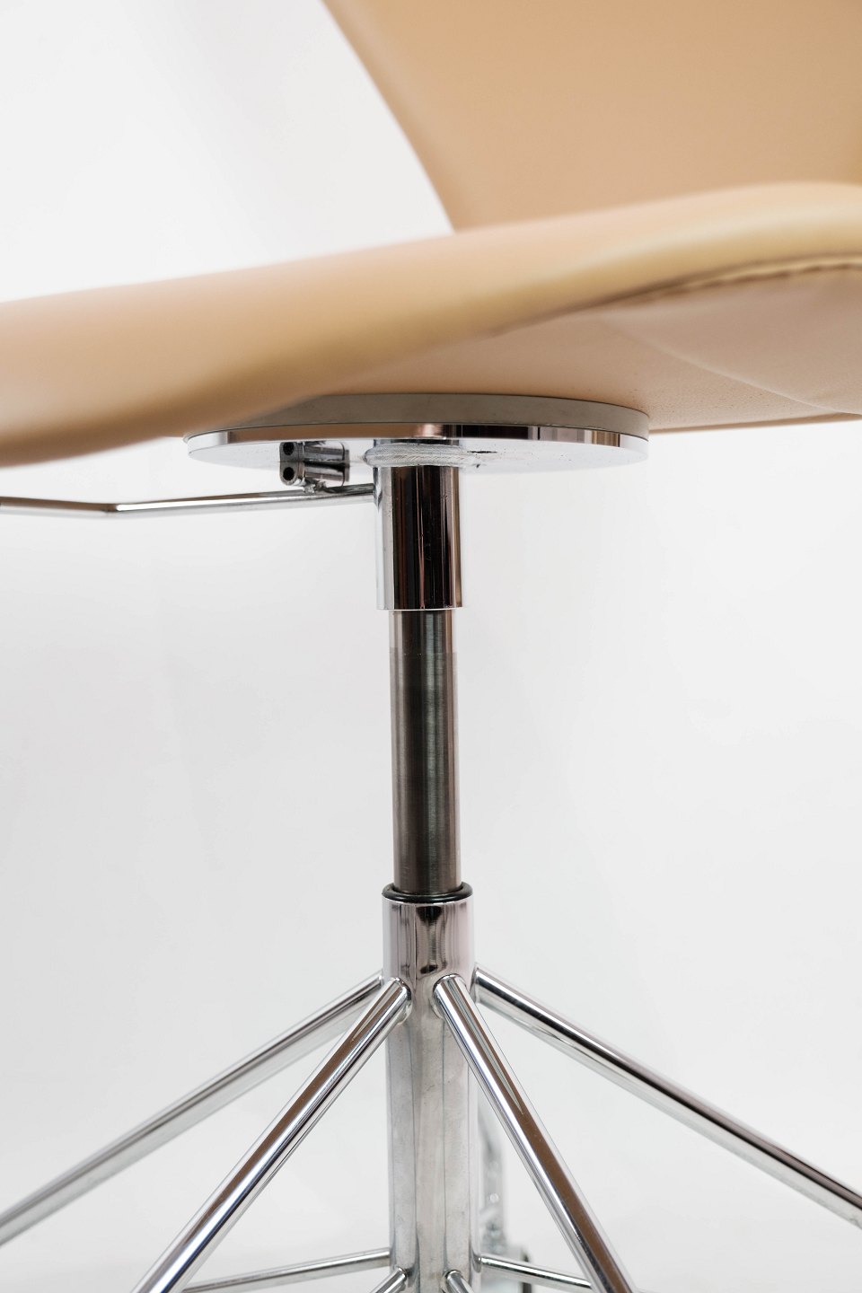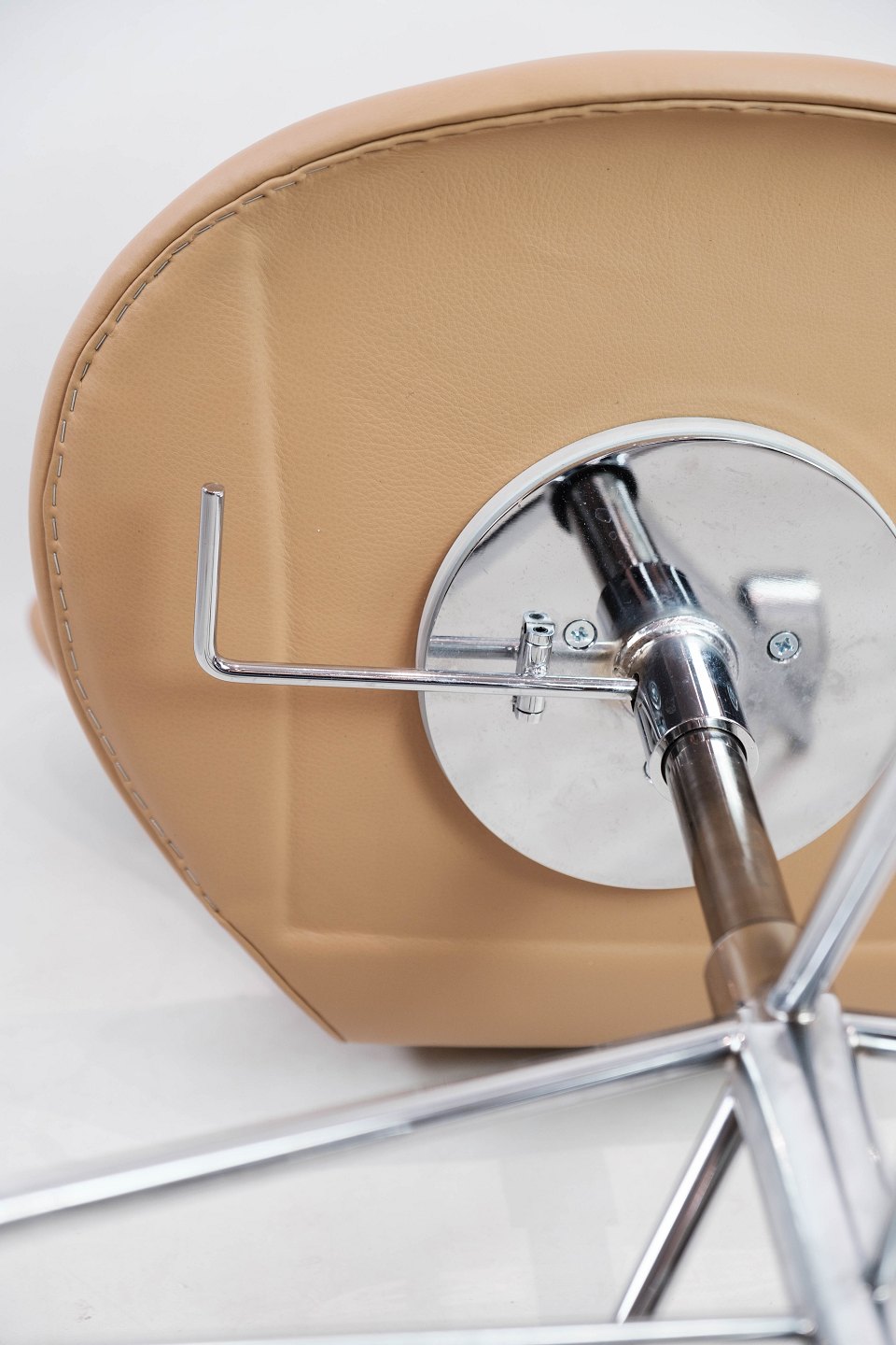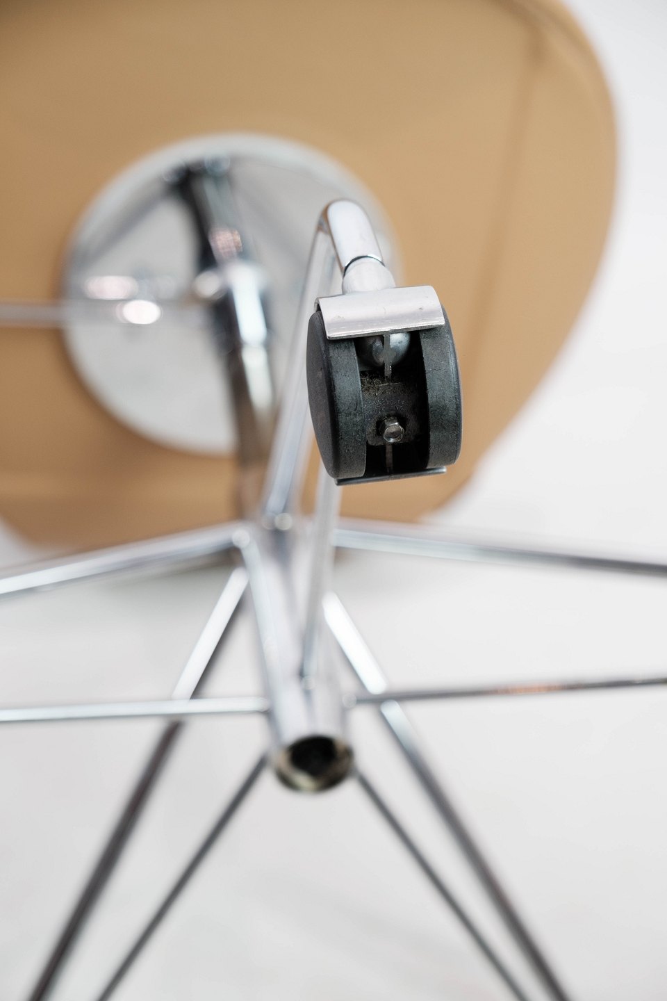 Series seven office chair, model 3117, without armrests and swivel function with original upholstery in light natural leather designed by Arne Jacobsen in the 1950s and manufactured by Fritz Hansen.