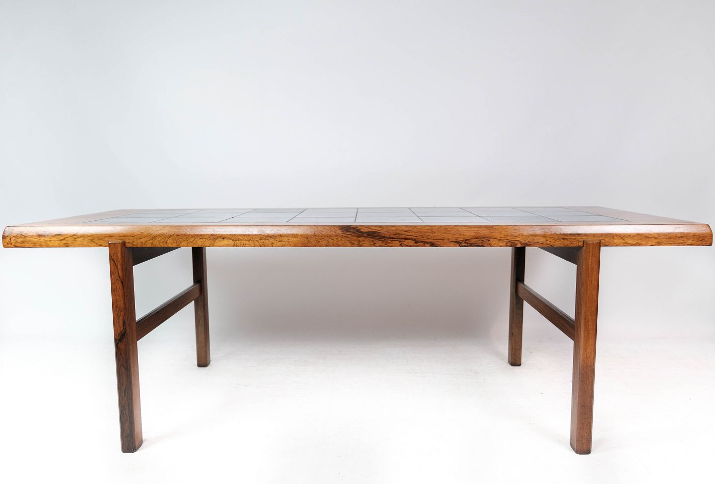 Coffee table in rosewood with blue tiles of Danish design manufactured by Arrebo Furniture in the 1960s. The table is in great vintage condition.