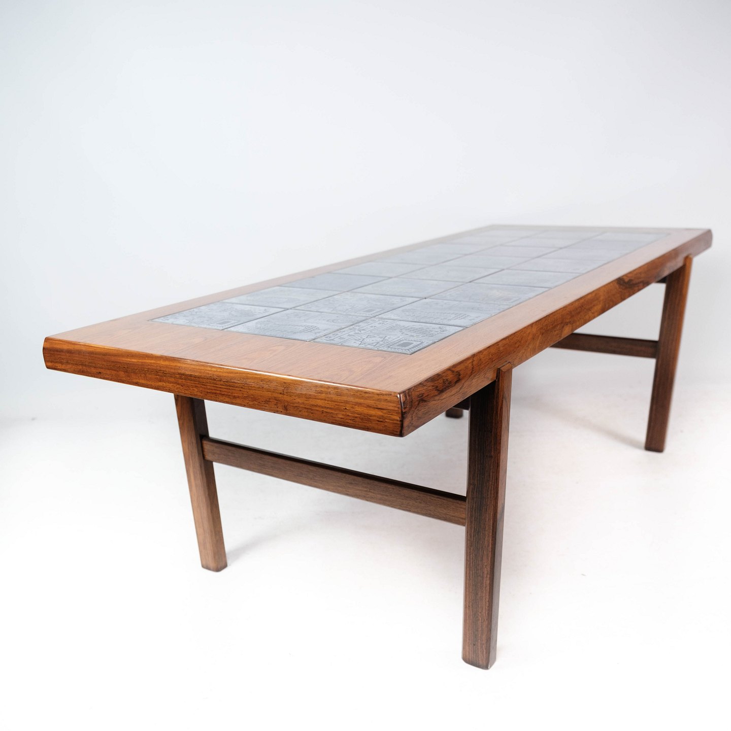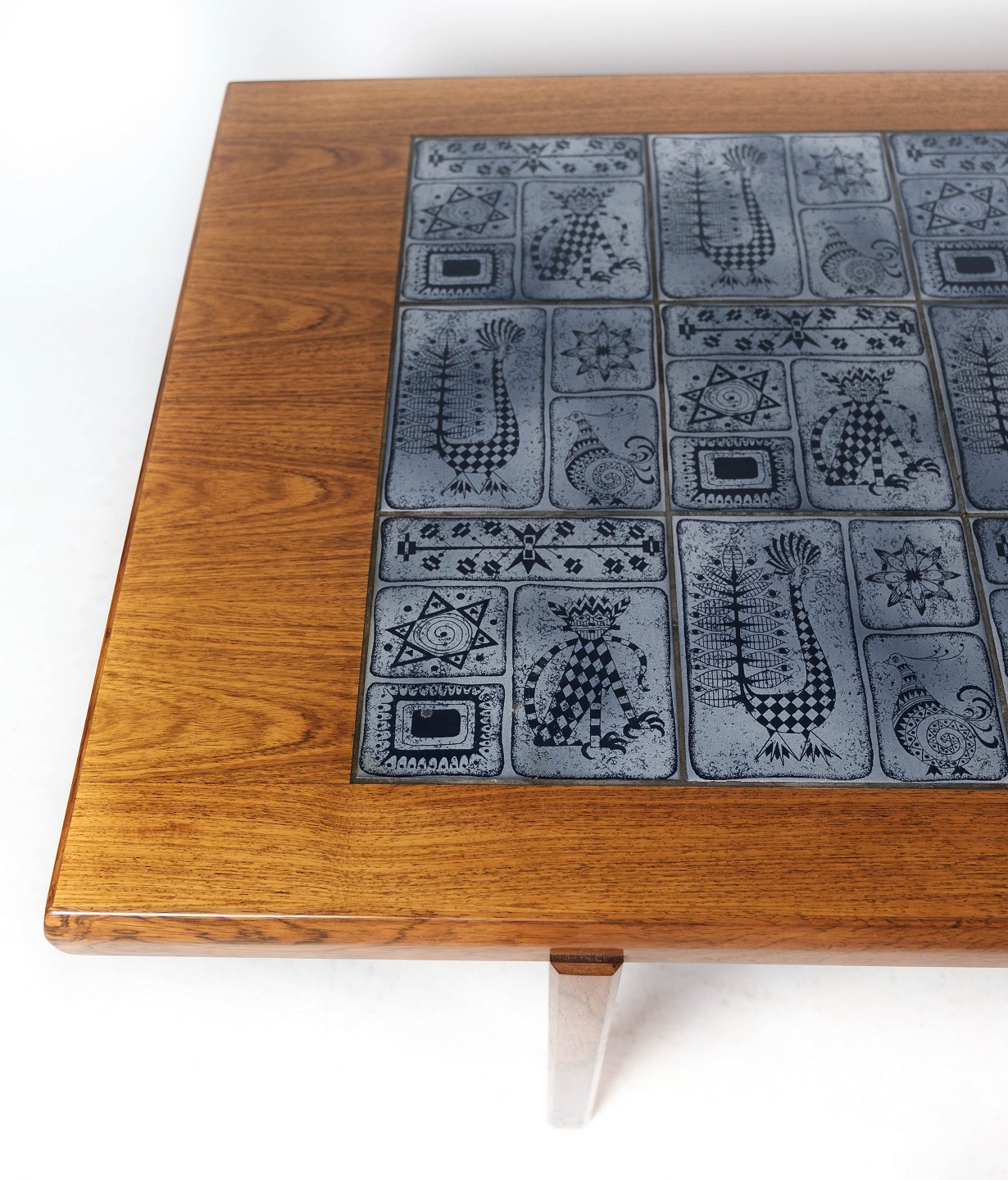 Coffee table in rosewood with blue tiles of Danish design manufactured by Arrebo Furniture in the 1960s.