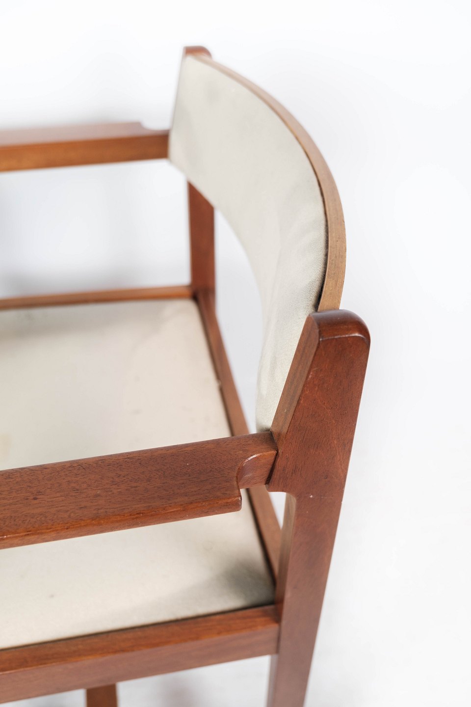 Armchair in mahogany and light fabric of Danish design manufactured by Søborg Furniture in the 1960s.